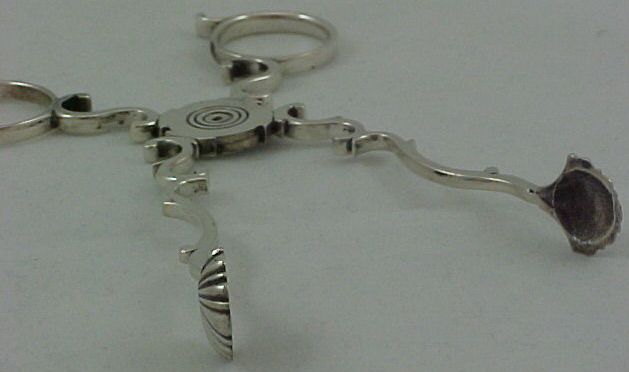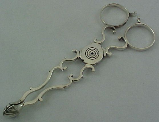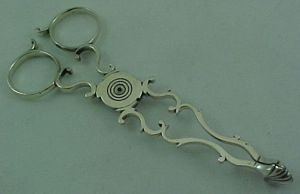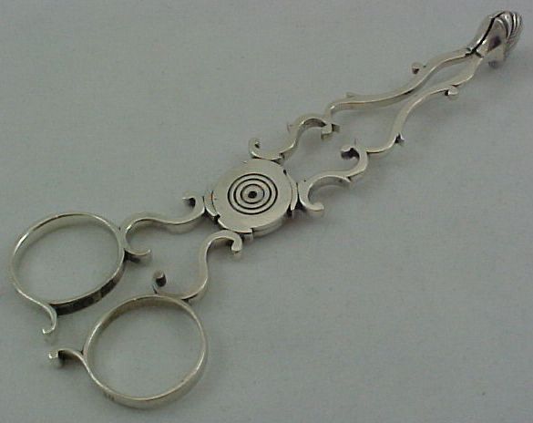 Very good pair of Georgian silver sugar or tea tongs with a lovely tight hinge. There is an original initial engraving to the finger rings. | ||