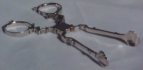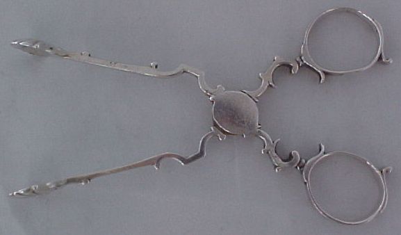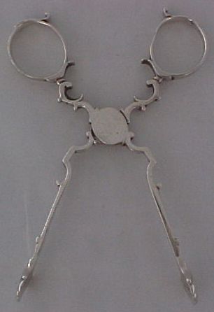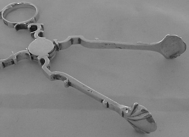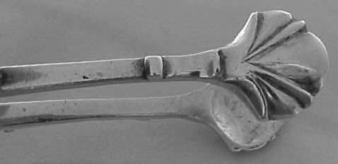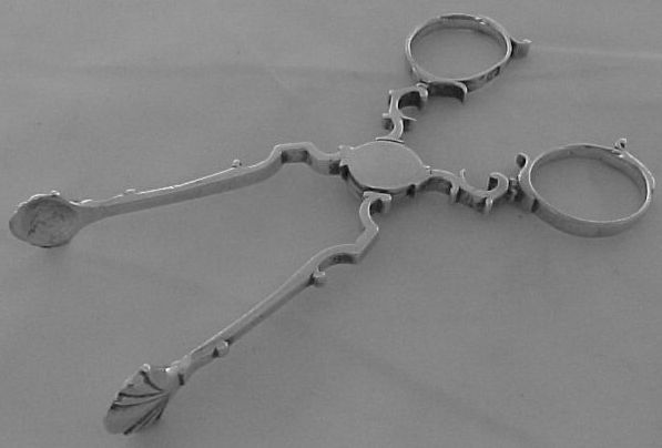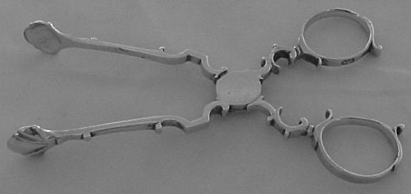 Georgian silver tea tongs with exceptionally clear hallmarks and a concealed hinge. | ||