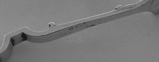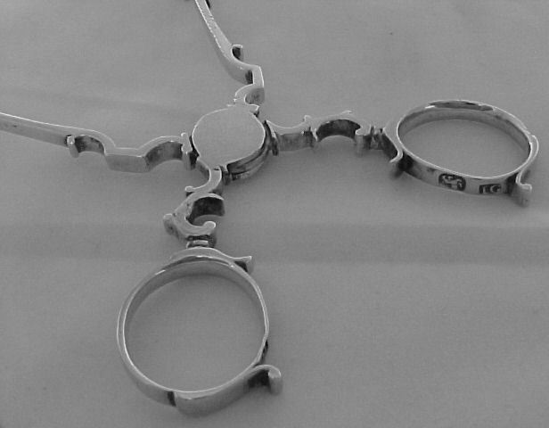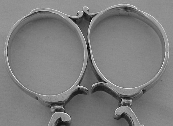 hinge has excessive wear/play enabling the finger rings to bump together, slightly misshaping one. |