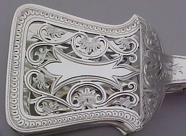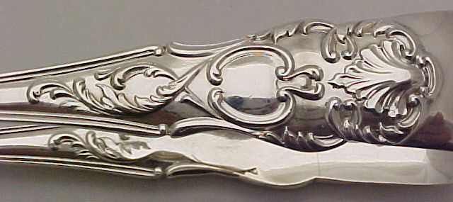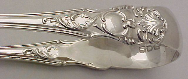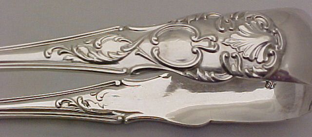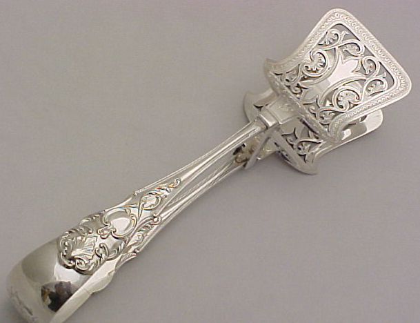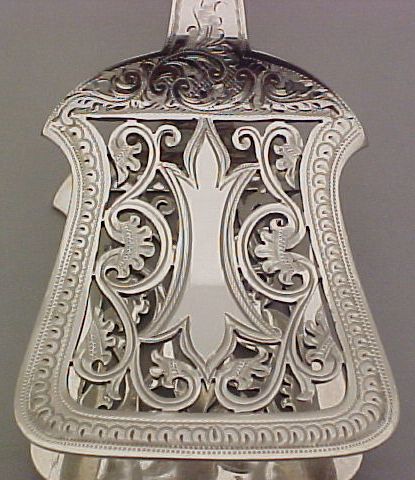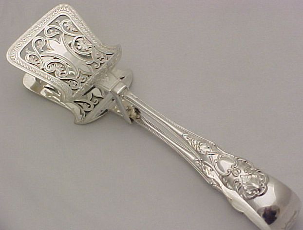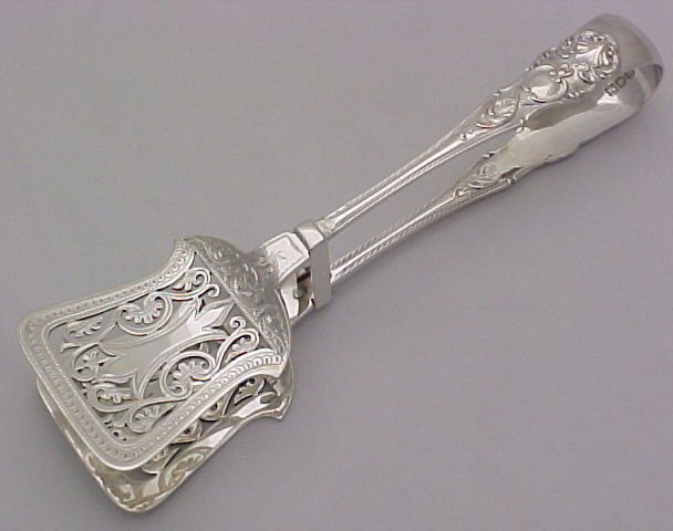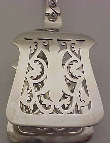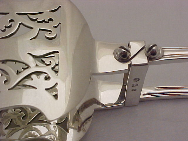 Pair of substantial Edwardian silver sandwich serving tongs, monogram engraved to the bow. |