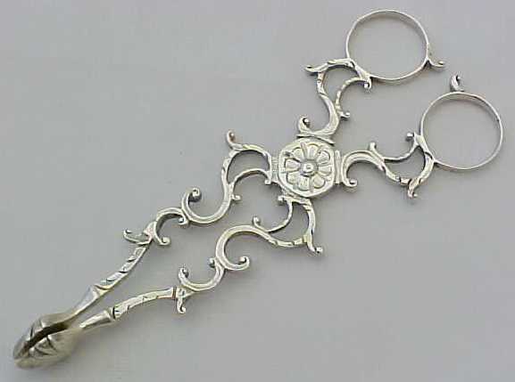 Scarce, large pair of Georgian silver sugar nips or tea tongs. This pair are rare because they are Irish and doubly rare because only half of Irish nips bear a maker's mark. |