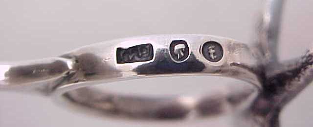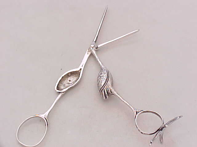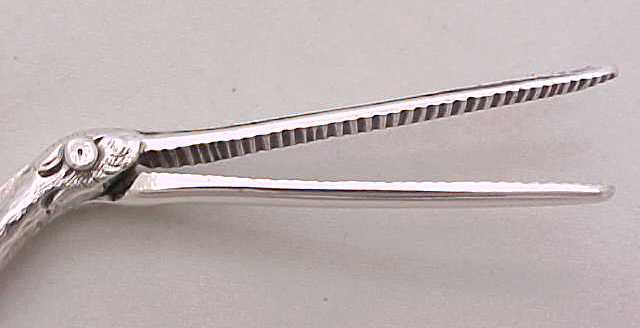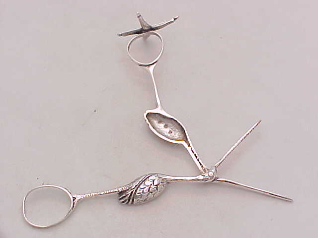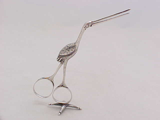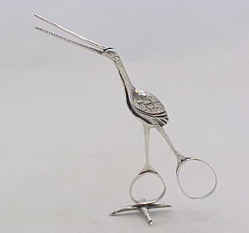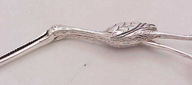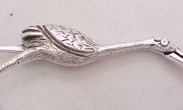 Pair Victorian cast silver stork ribbon pullers on a claw footed base. The marks, a number 4, within the body are cast identification marks to ensure that the correct two halves were assembled as each casting is unique. |