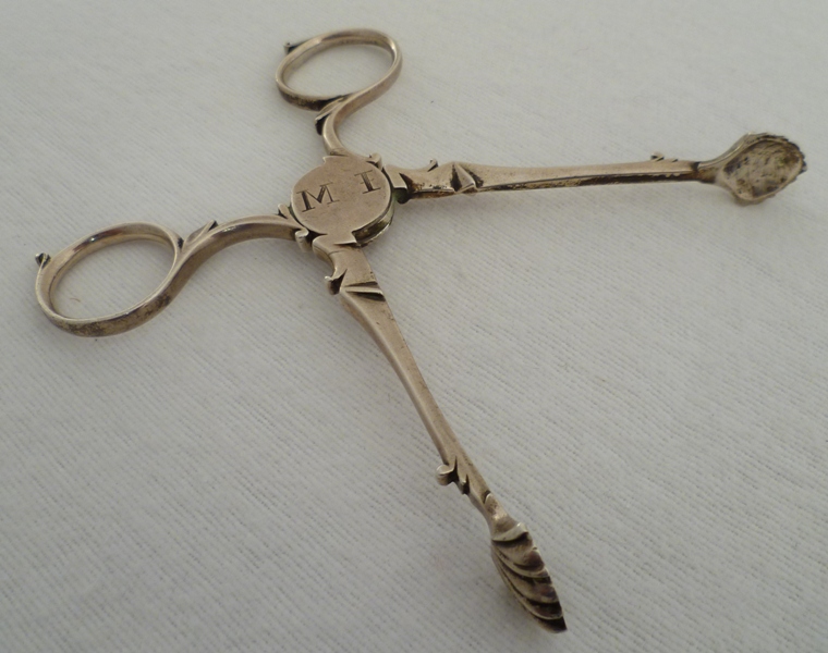 Good and original pair of Georgian silver sugar nips with an initial engraved hinge box. |