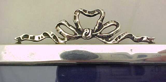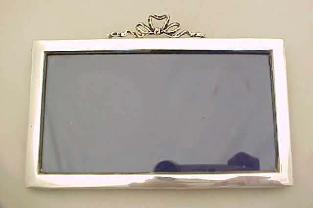 Edwardian silver photograph frame with a ribbon bow decorated top an an easel back. |
