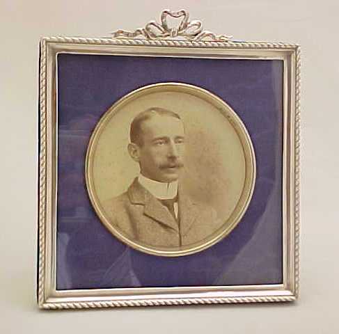 Pretty Edwardian silver photograph frame with a silver circular aperture. The hallmark to the outer frame is miss struck but the mark to the inner round frame is perfect. |