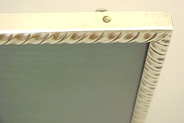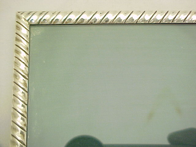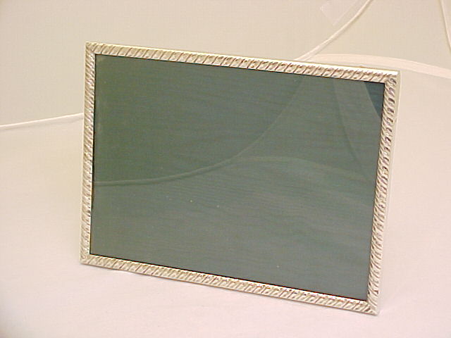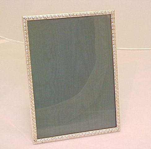 Finest quality 8 3/4" x 6 3/8" German silver mounted photograph frame with a hinge mounted wooden easel back that will stand horizontally as well as vertically. |