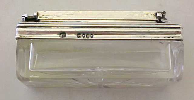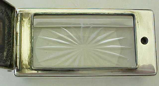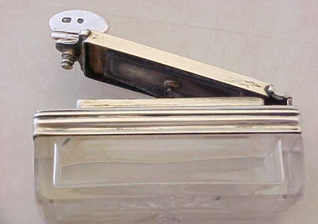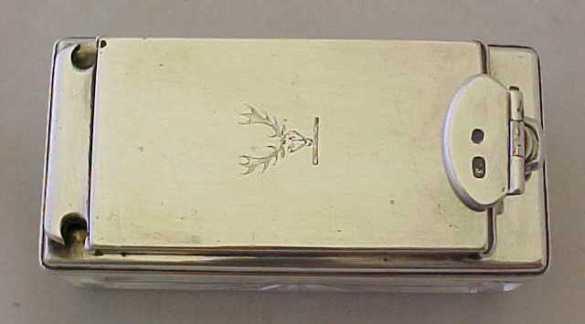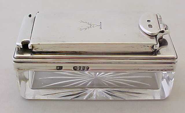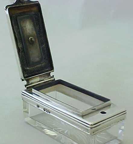 Victorian silver travelling inkwell with a star cut glass body and crested to the top. |