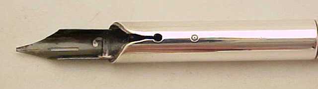 Silver dip pen called the 'Ejector' although this one appears not to as the nib simply pulls out. |