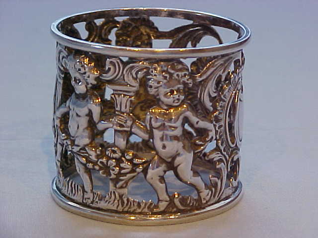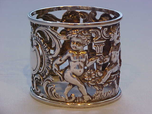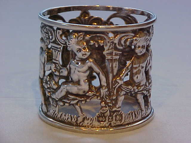 Victorian silver cherub decorated napkin ring. |