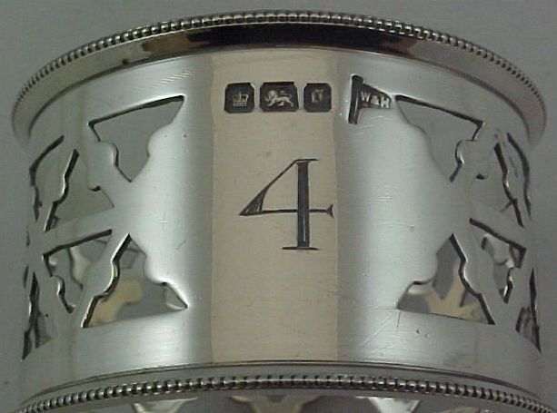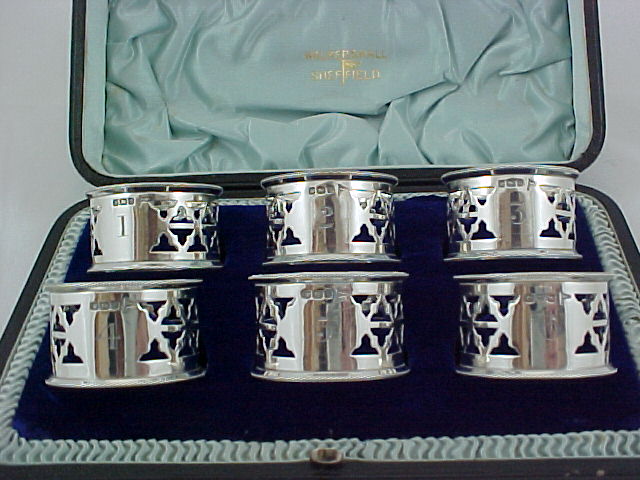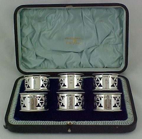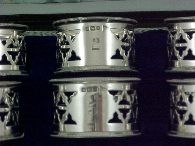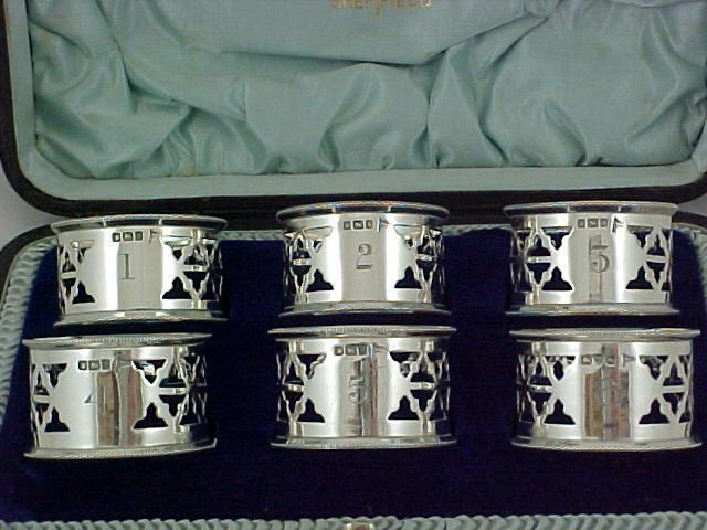 Cased set of six Edwardian silver napkin rings, numbered 1-6. Ring number six was assayed at Chester in 1906 but is identical to the other five. |