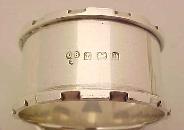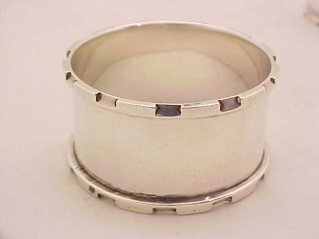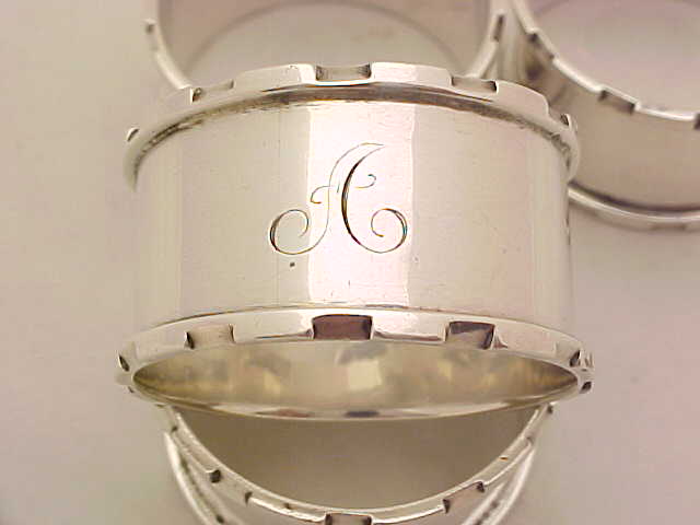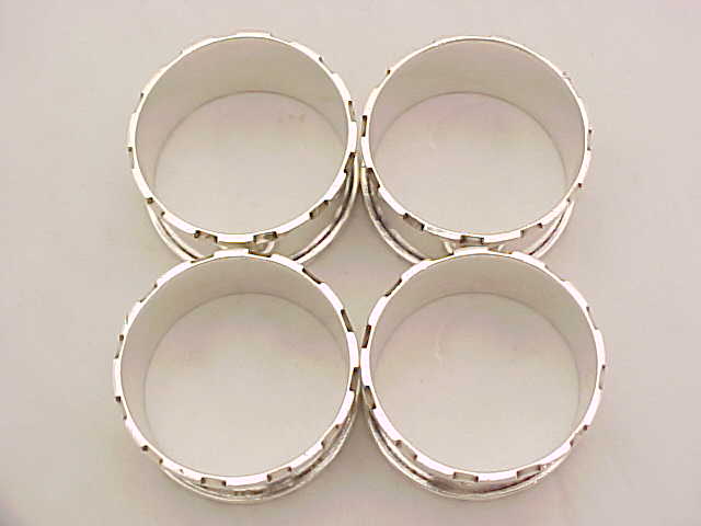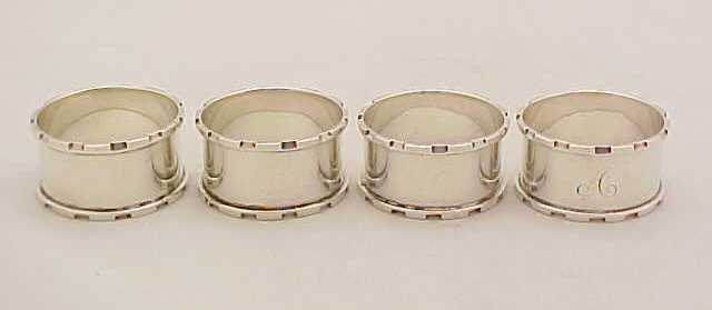 Very good set of four heavy silver napkin rings, plain with castellated rims. One has simple engraved 'A', the rest are blank and always have been. |
