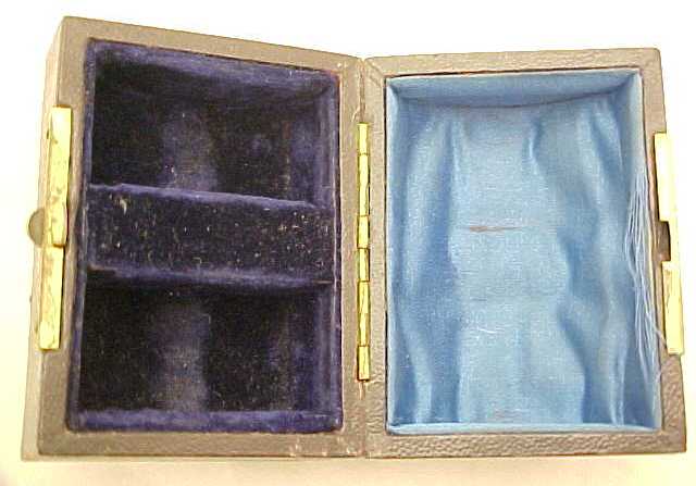 none with the silver, scuff marks to the case and the silk has split along the clasp edge. |