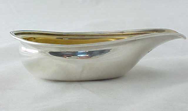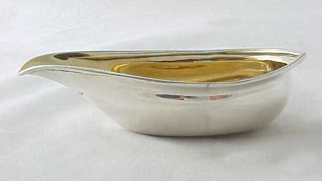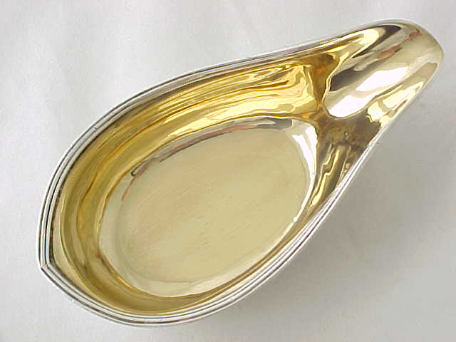 Very good Georgian silver pap boat with a thread decorated applied border and a gilded interior. |