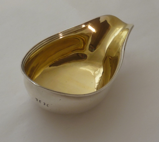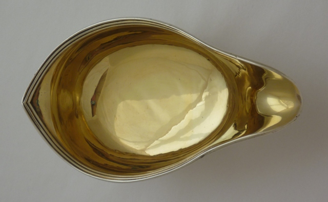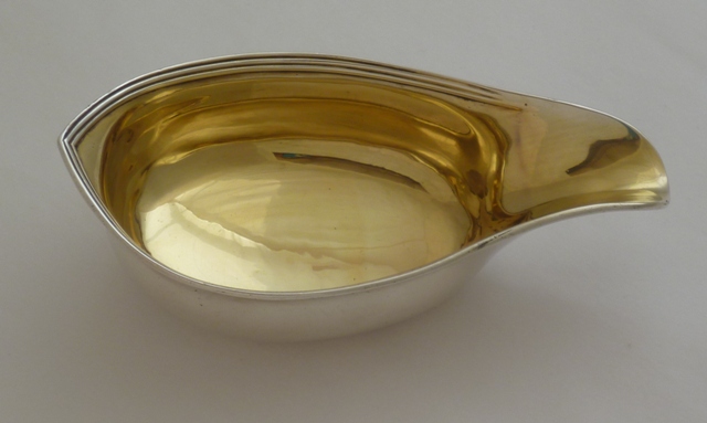 Fine Georgian silver pap boat with a double thread border and gilded interior. |