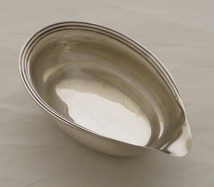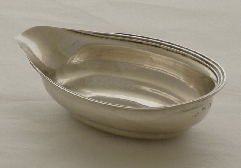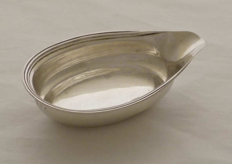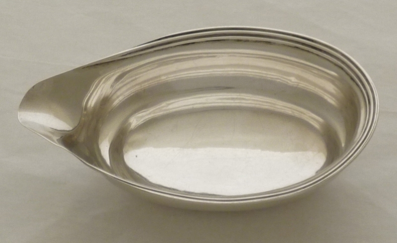 Infant's size Georgian silver pap boat with a thread decorated rim. Probably smaller than you are expecting and certainly the smallest I have seen. |