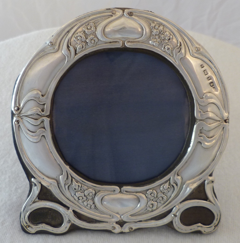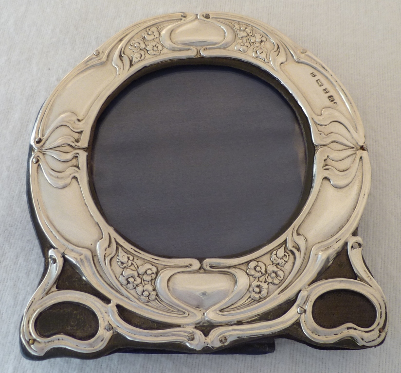 DESCRIPTION | Victorian Art Nouveau silver photograph frame with a strut support and backed in purple velvet and silk. Recently cleaned and re-pinned and now ready for immediate action. |