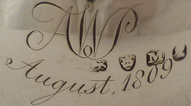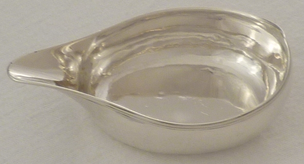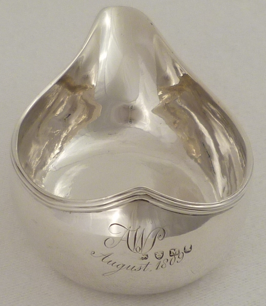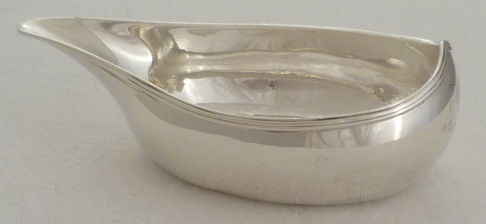 Typical Georgian silver pap boat with a thread decorated rim and engraved monogram and date August 1809. |