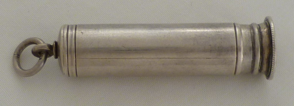 | DESCRIPTION | Spring loaded extending silver cigar piercer. |