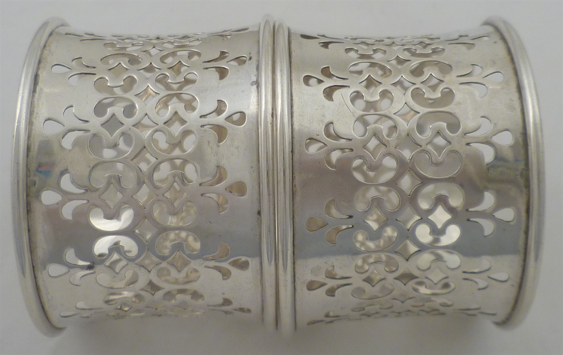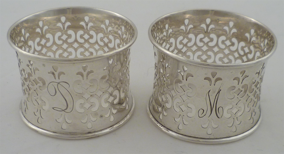 DESCRIPTION | Large pair of pierced solid silver napkin rings, each with a single initial engraving. |
