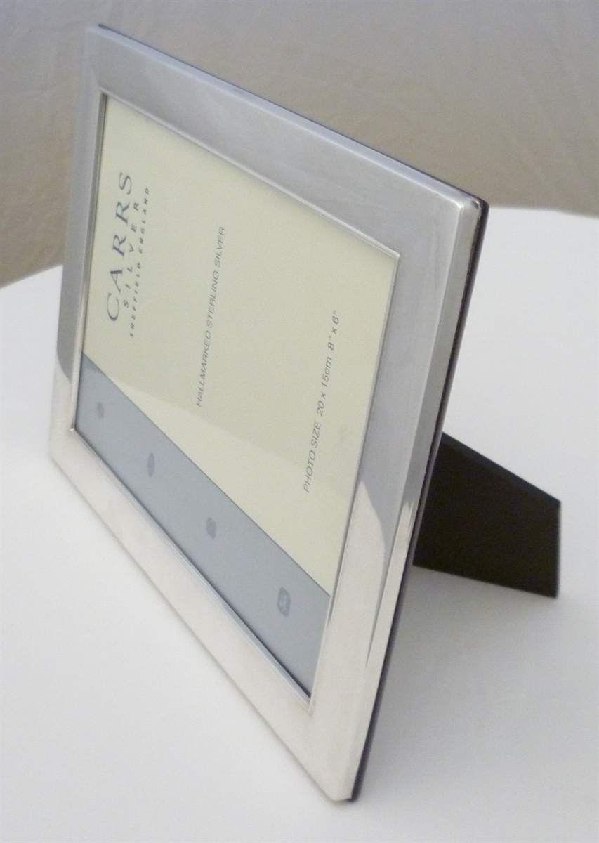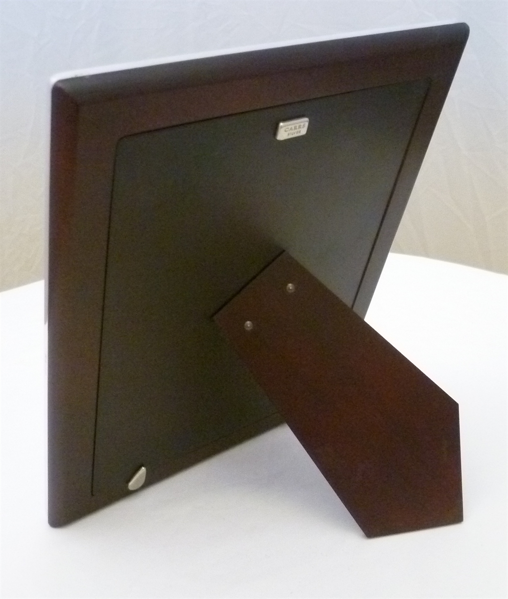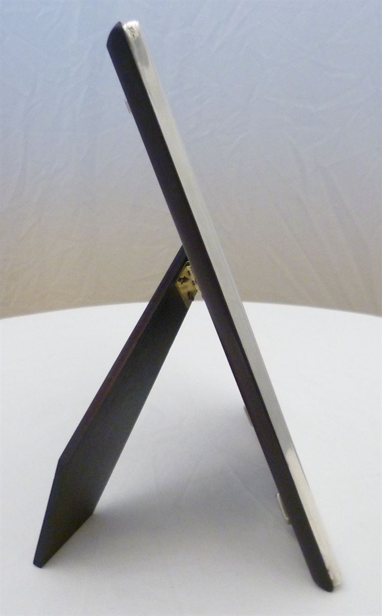 DESCRIPTION | Very good solid sterling silver mounted photograph frame with a wood strut back that works landscape and portrait. |