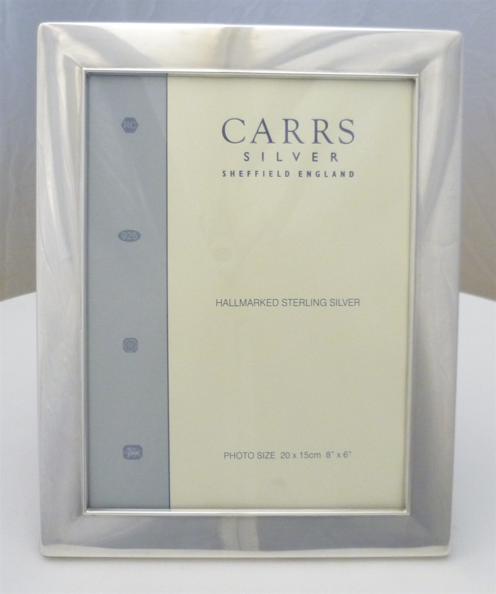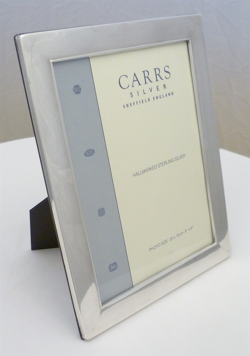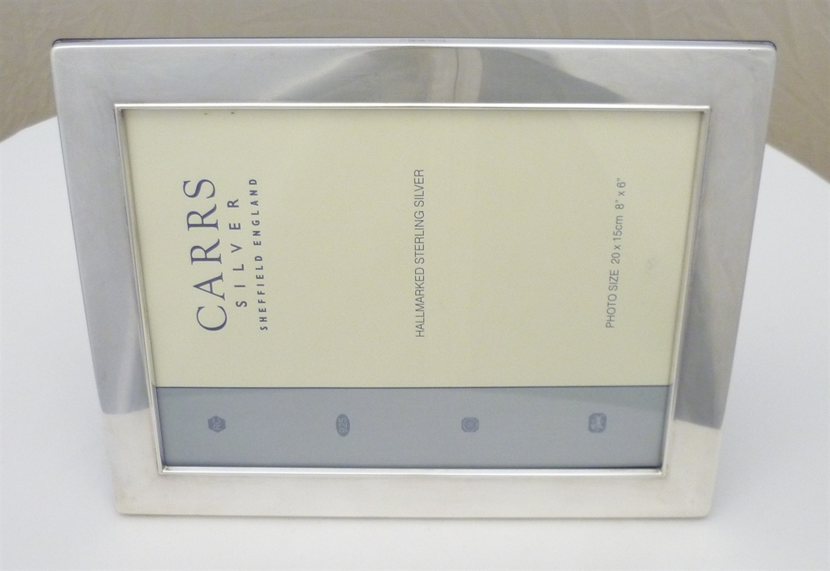 DESCRIPTION | Very good solid sterling silver mounted photograph frame with a wood strut back that works landscape and portrait. |