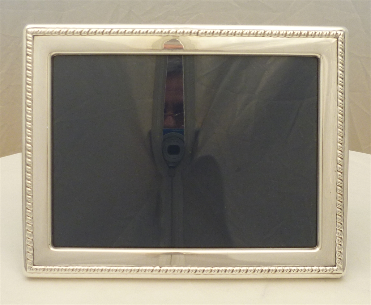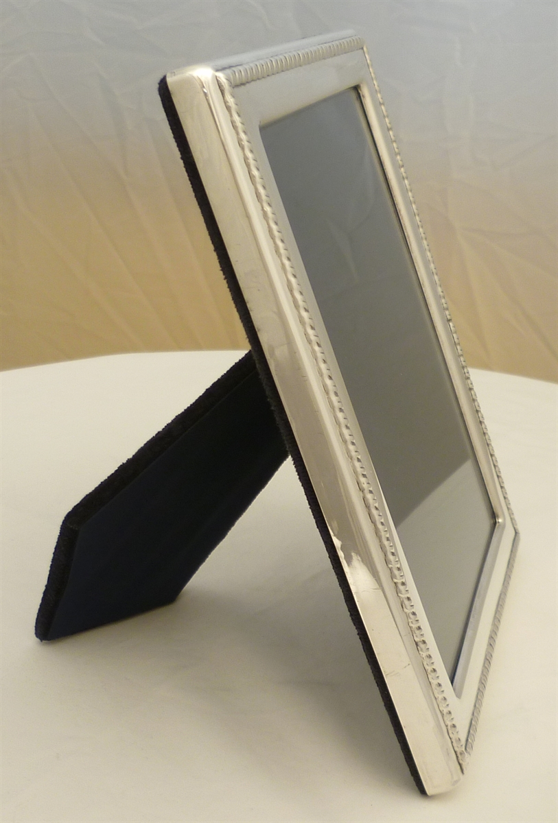 DESCRIPTION | Very good solid sterling silver mounted photograph frame with a felt strut back that works landscape and portrait. |