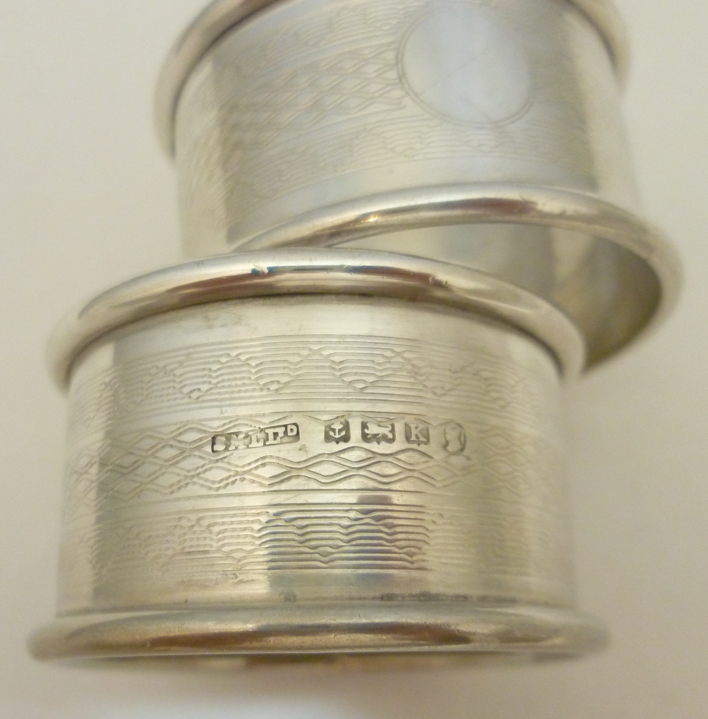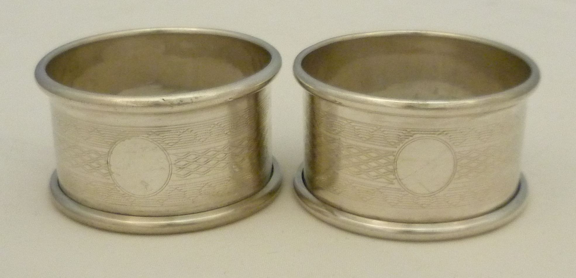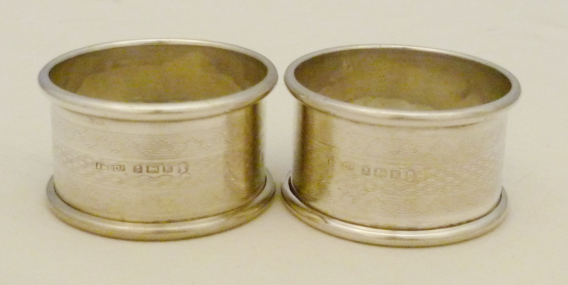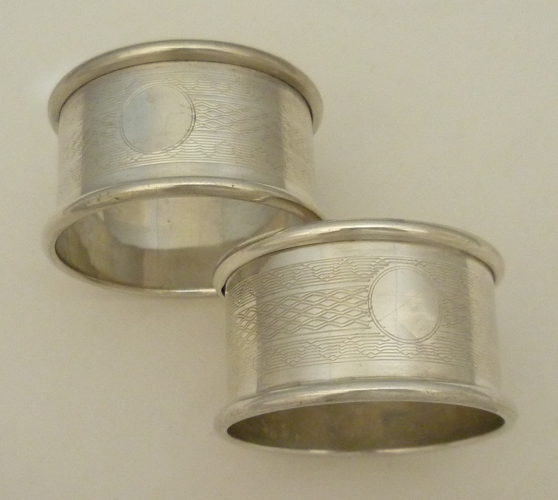 DESCRIPTION | Pair of solid sterling silver napkin rings with engine turned engraved decoration. |
