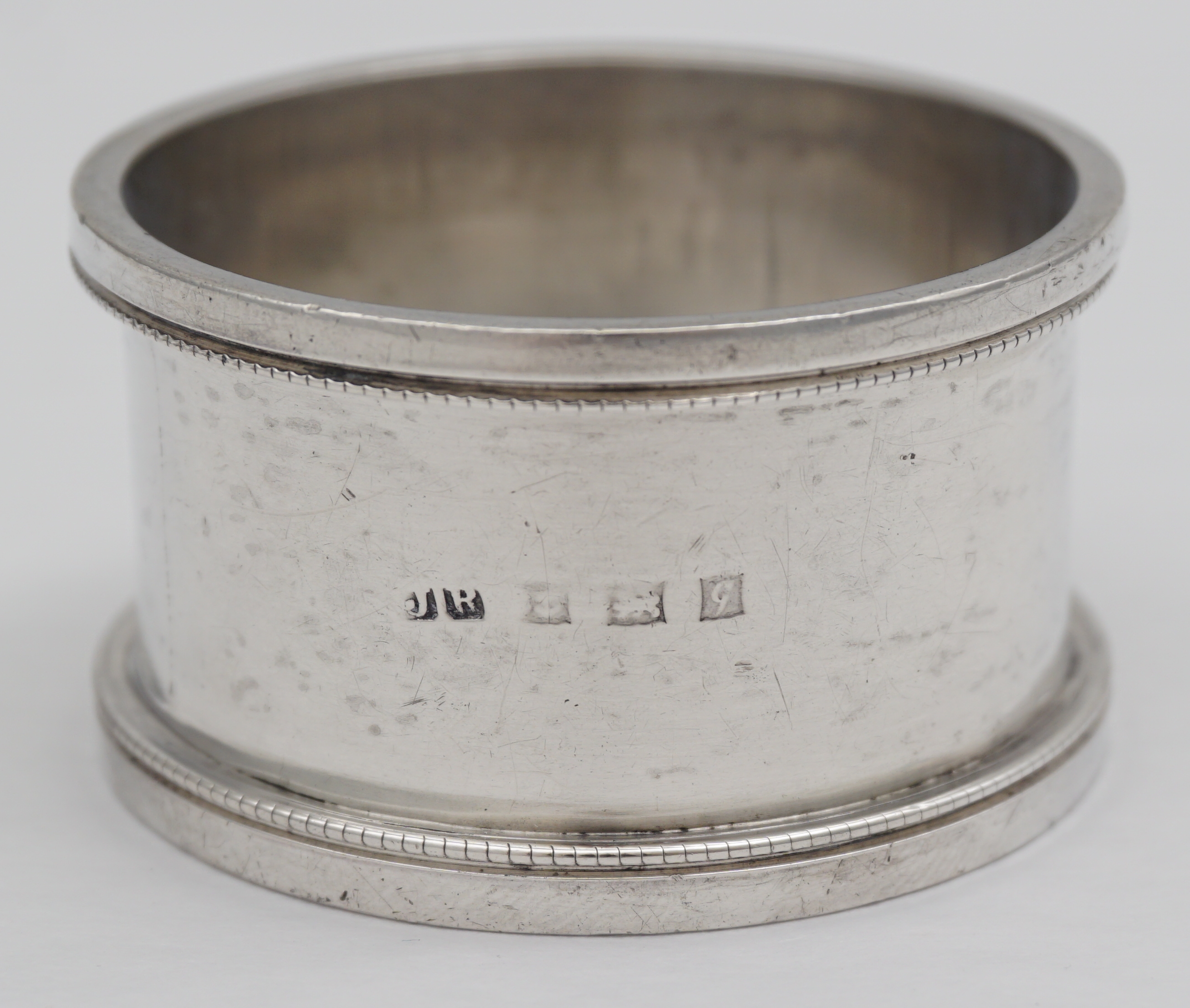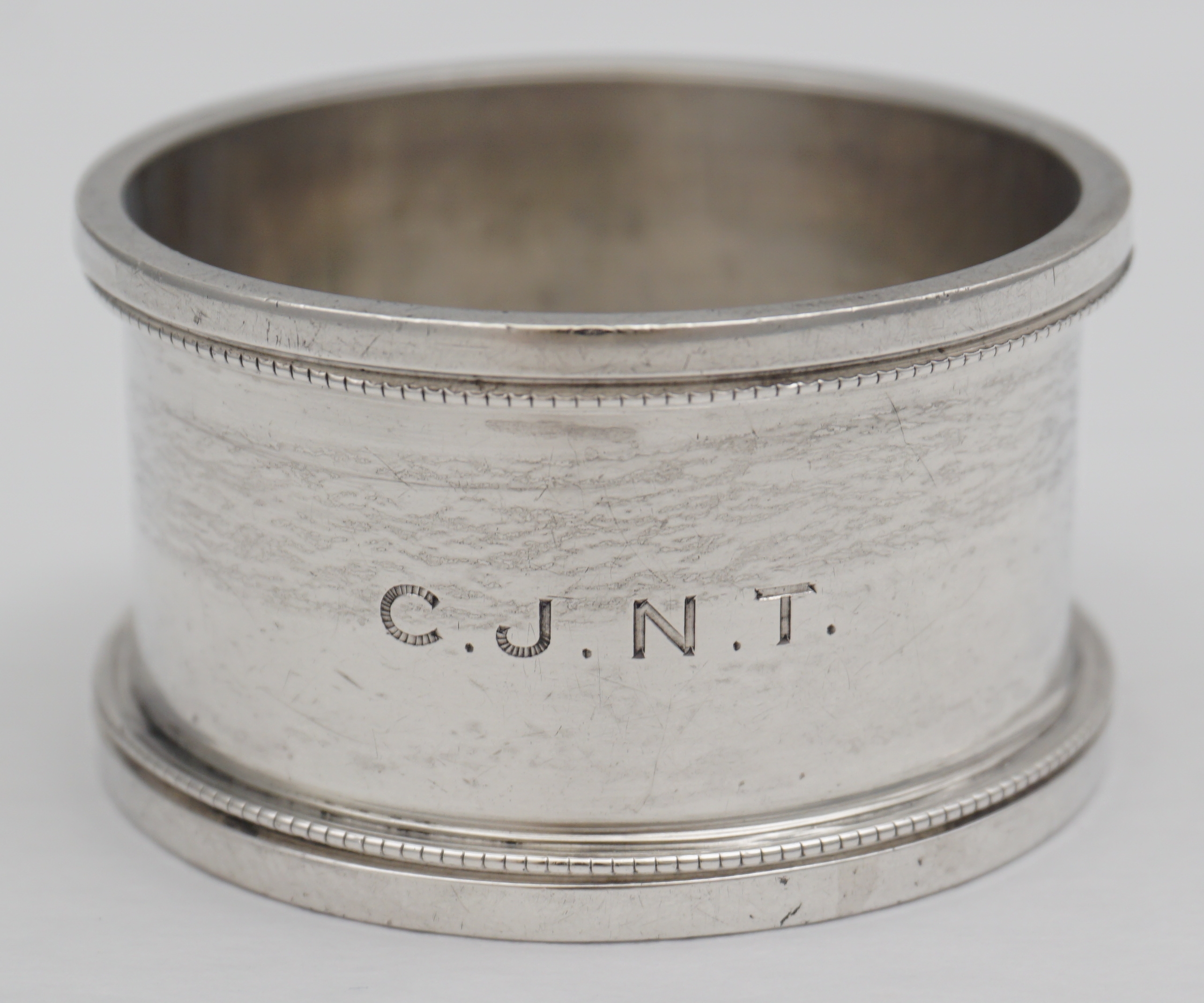 DESCRIPTION | Good and heavy vintage solid sterling silver napkin/serviette ring with engraved initials that amuse me. CJNT |