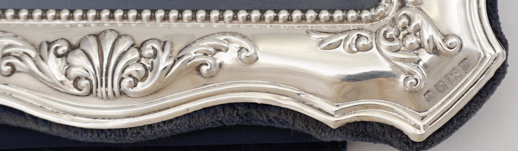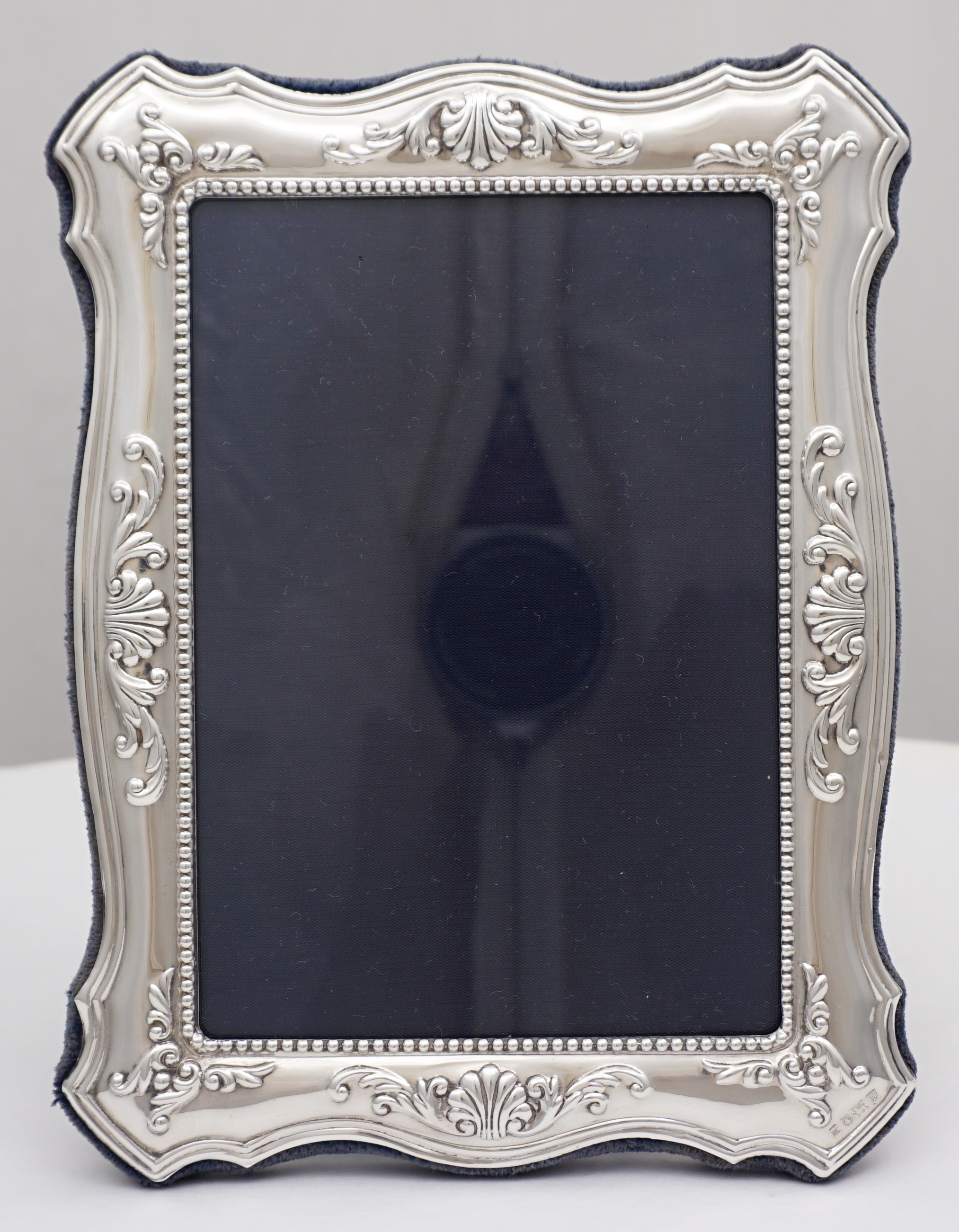 DESCRIPTION | Good solid sterling silver mounted portrait aspect photograph frame with shell and scroll decoration and a felt strut back. |