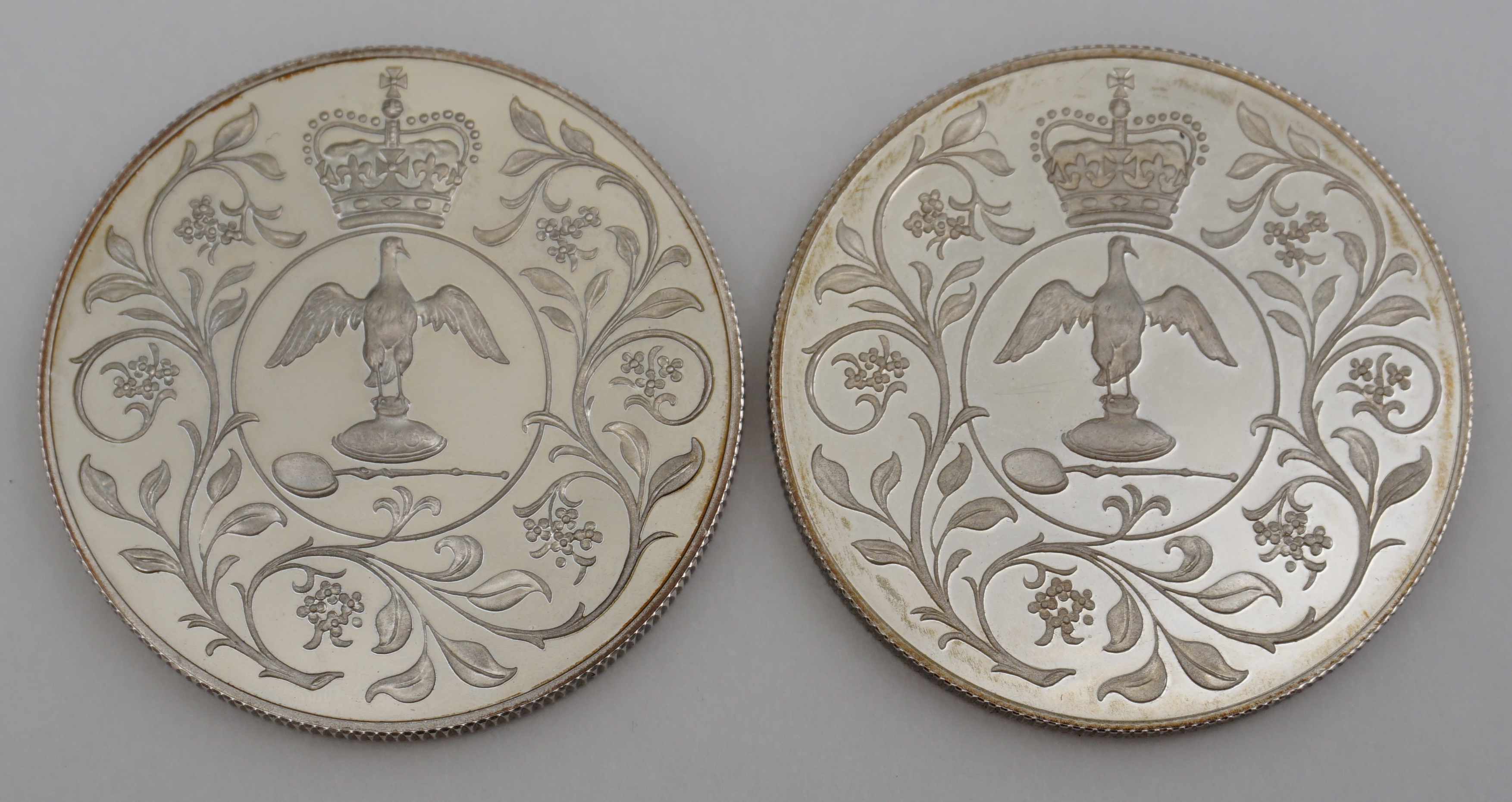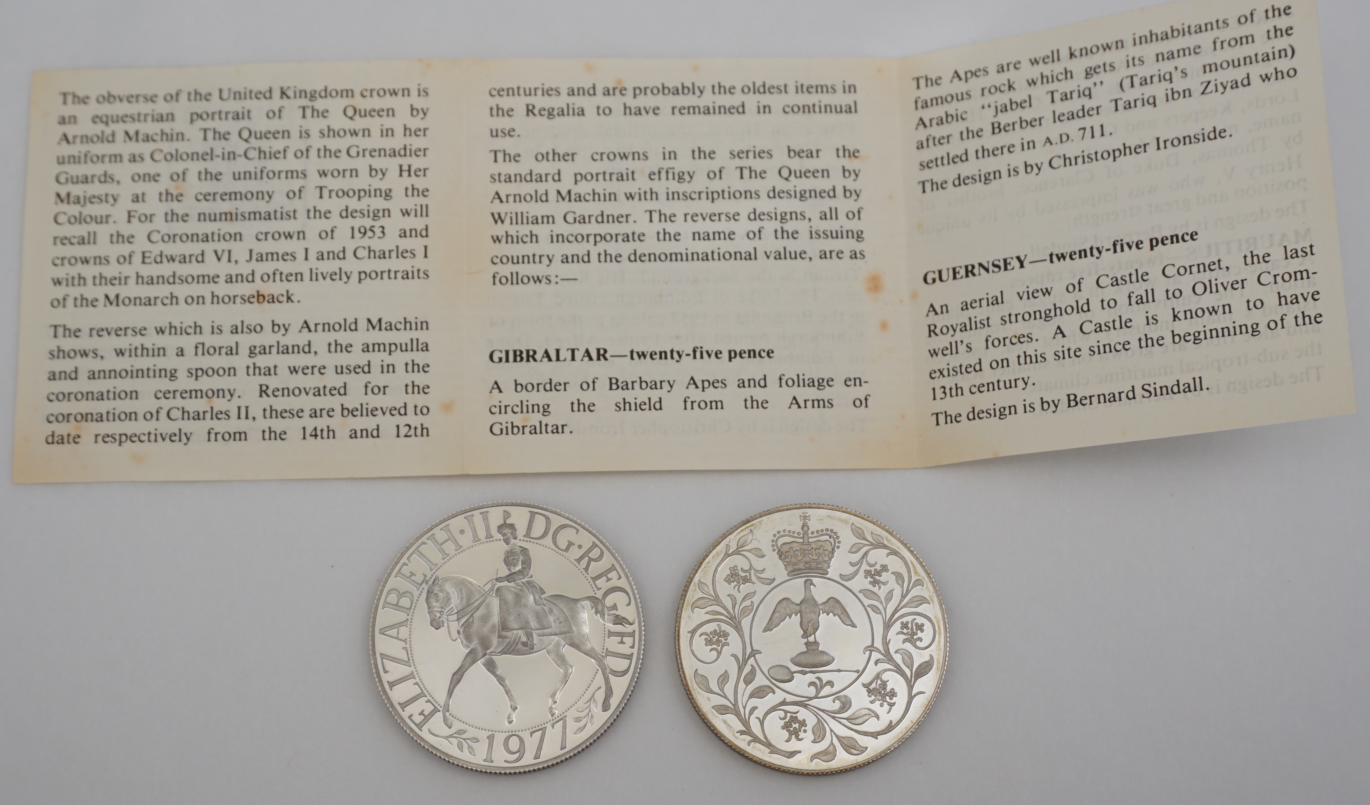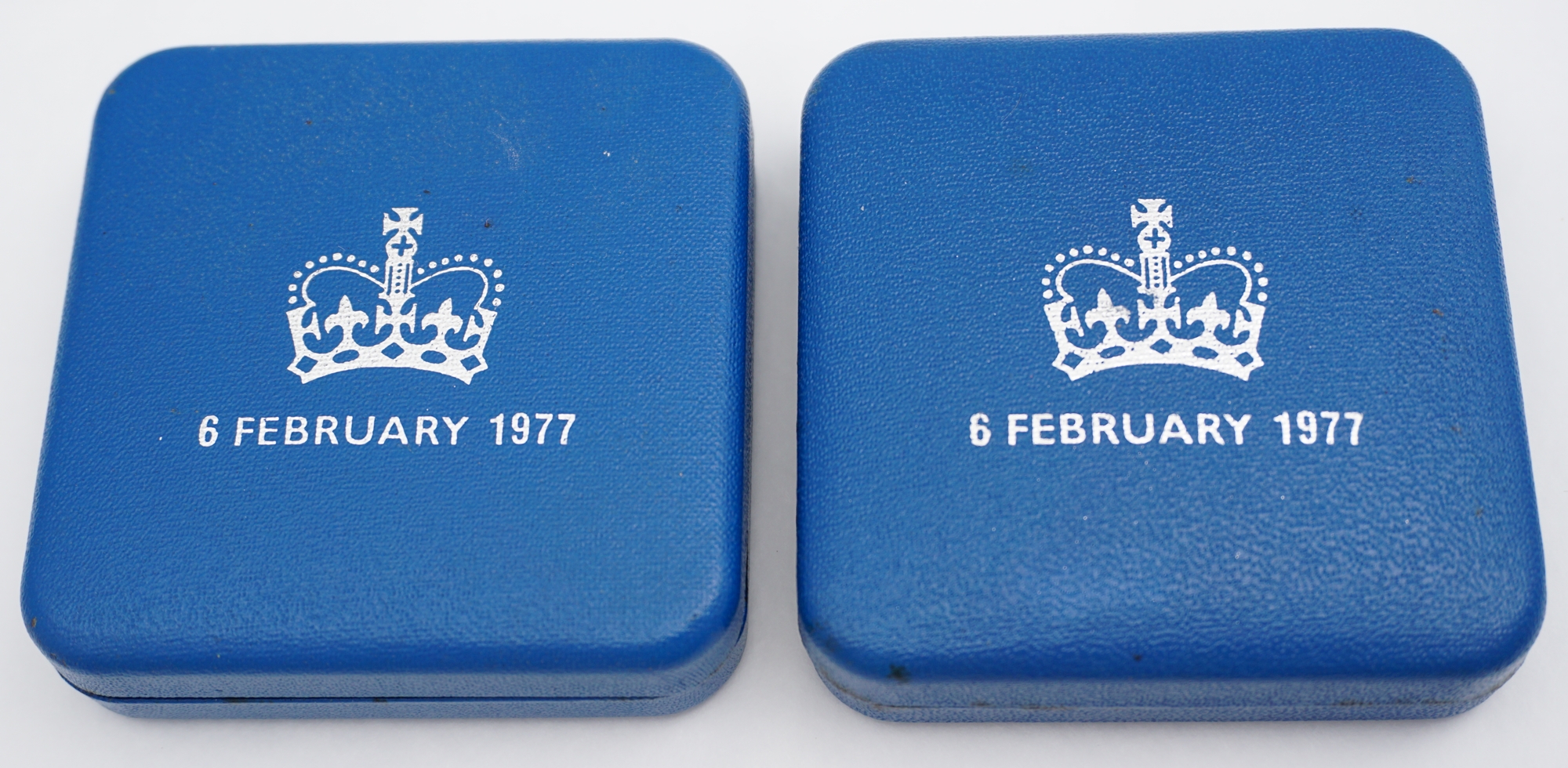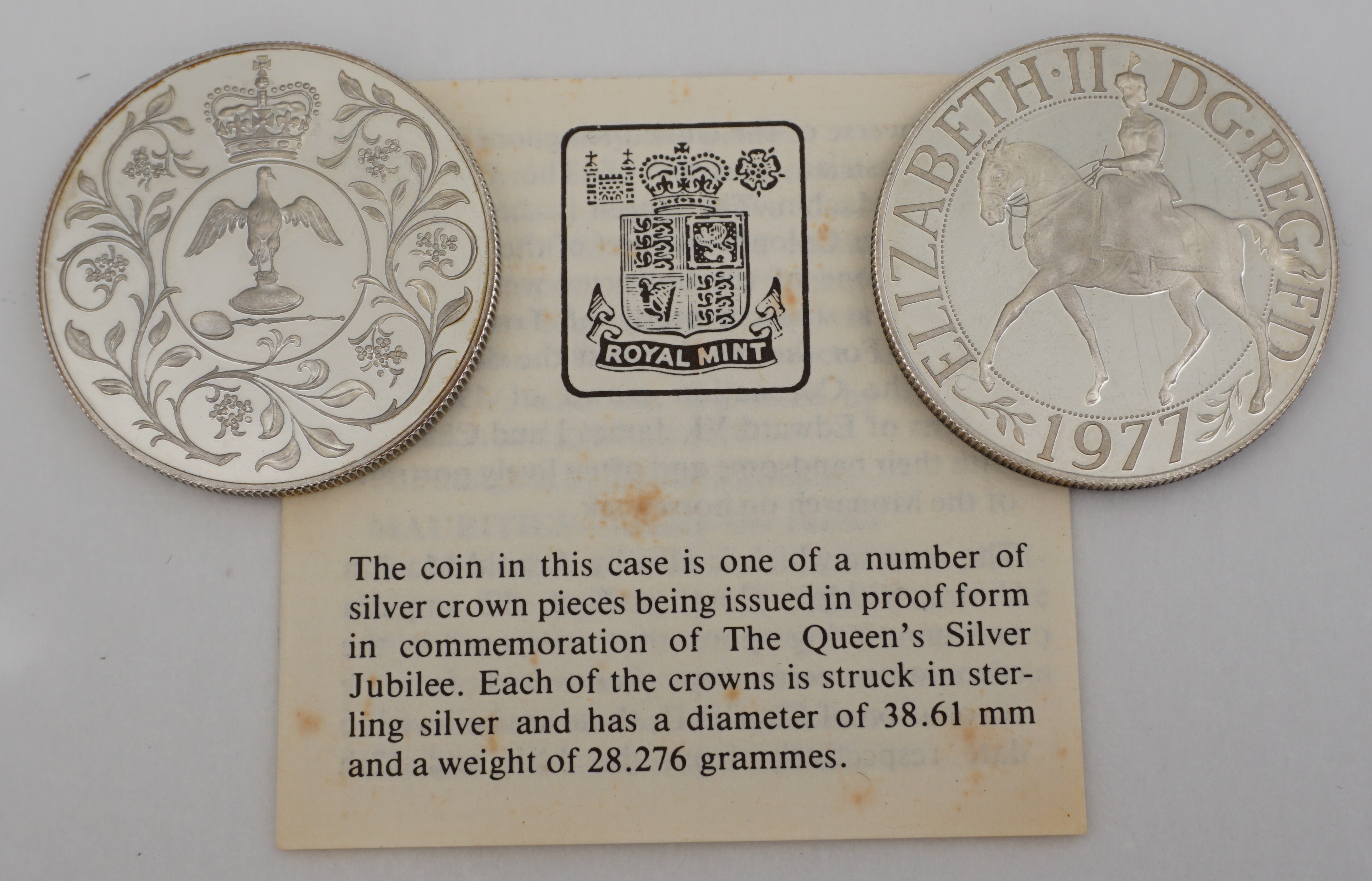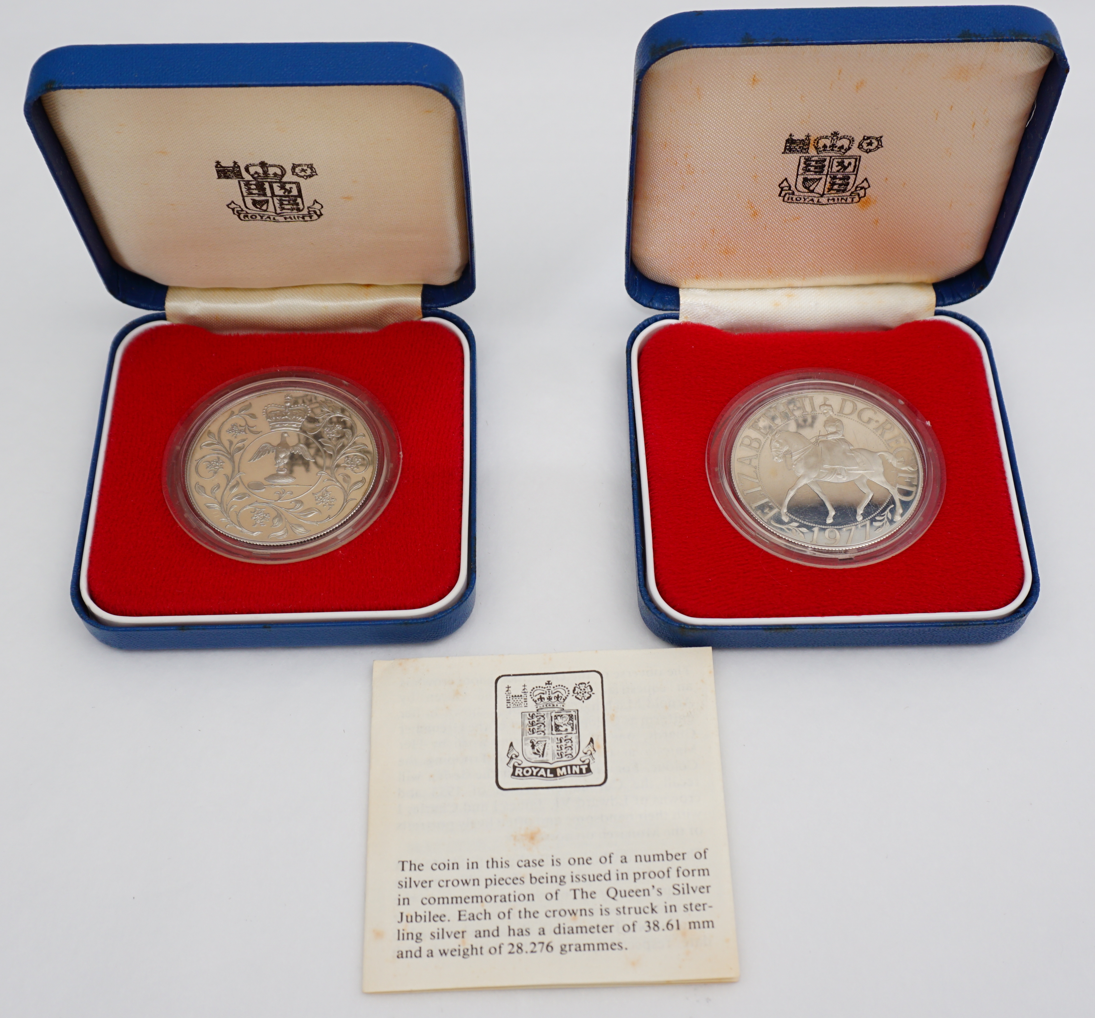 DESCRIPTION | Two solid sterling silver crowns commemorating the 1977 Silver Jubilee of QEII. |