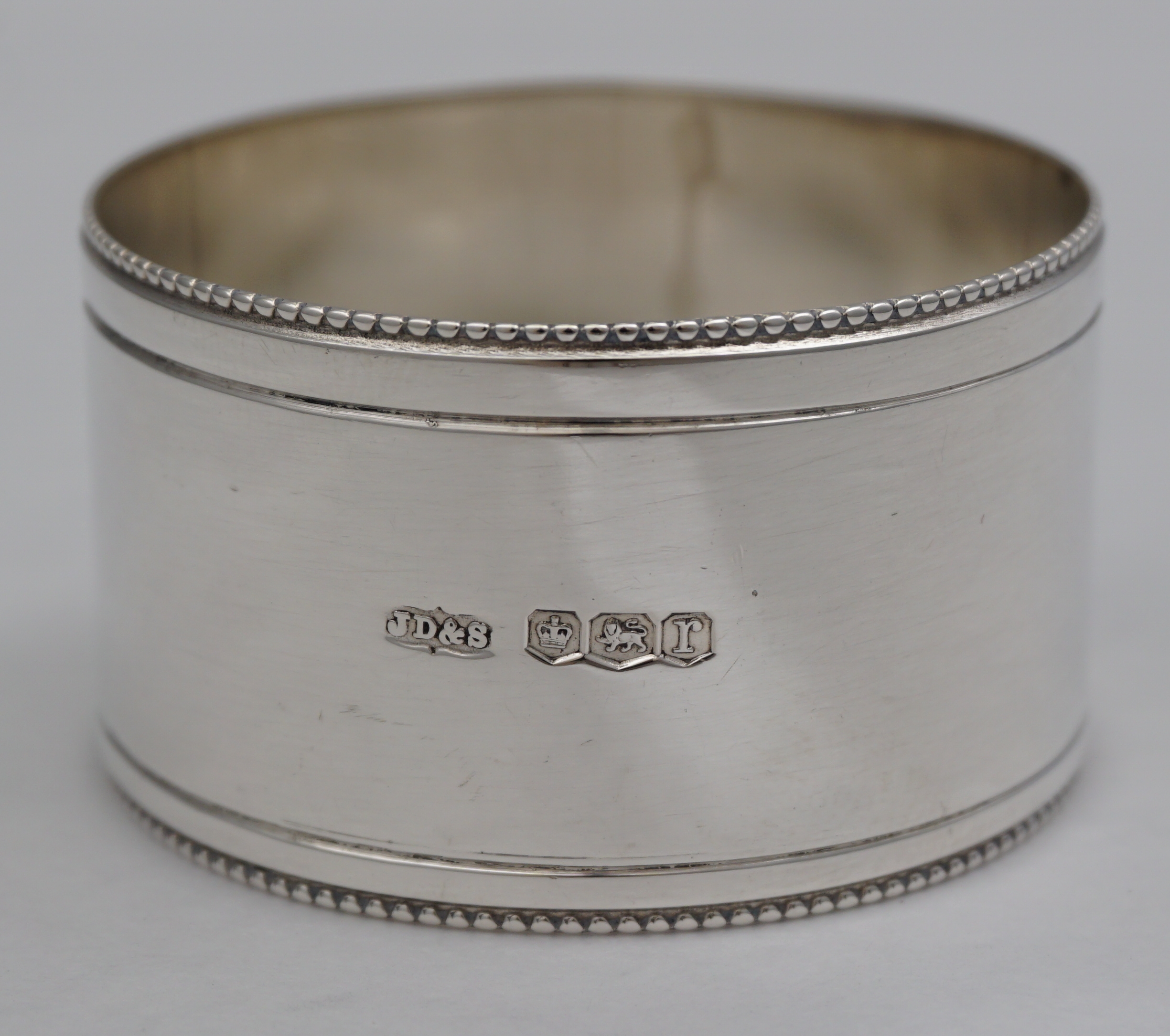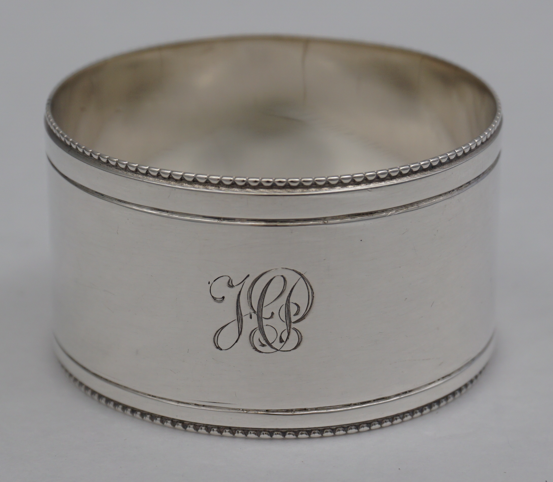 DESCRIPTION | Standard vintage English solid sterling silver napkin or serviette ring with monogram engraving. |