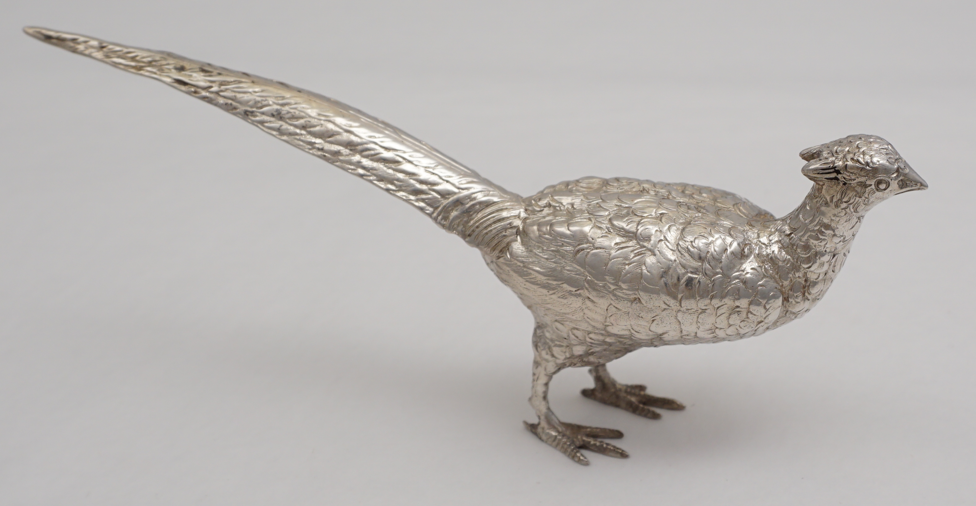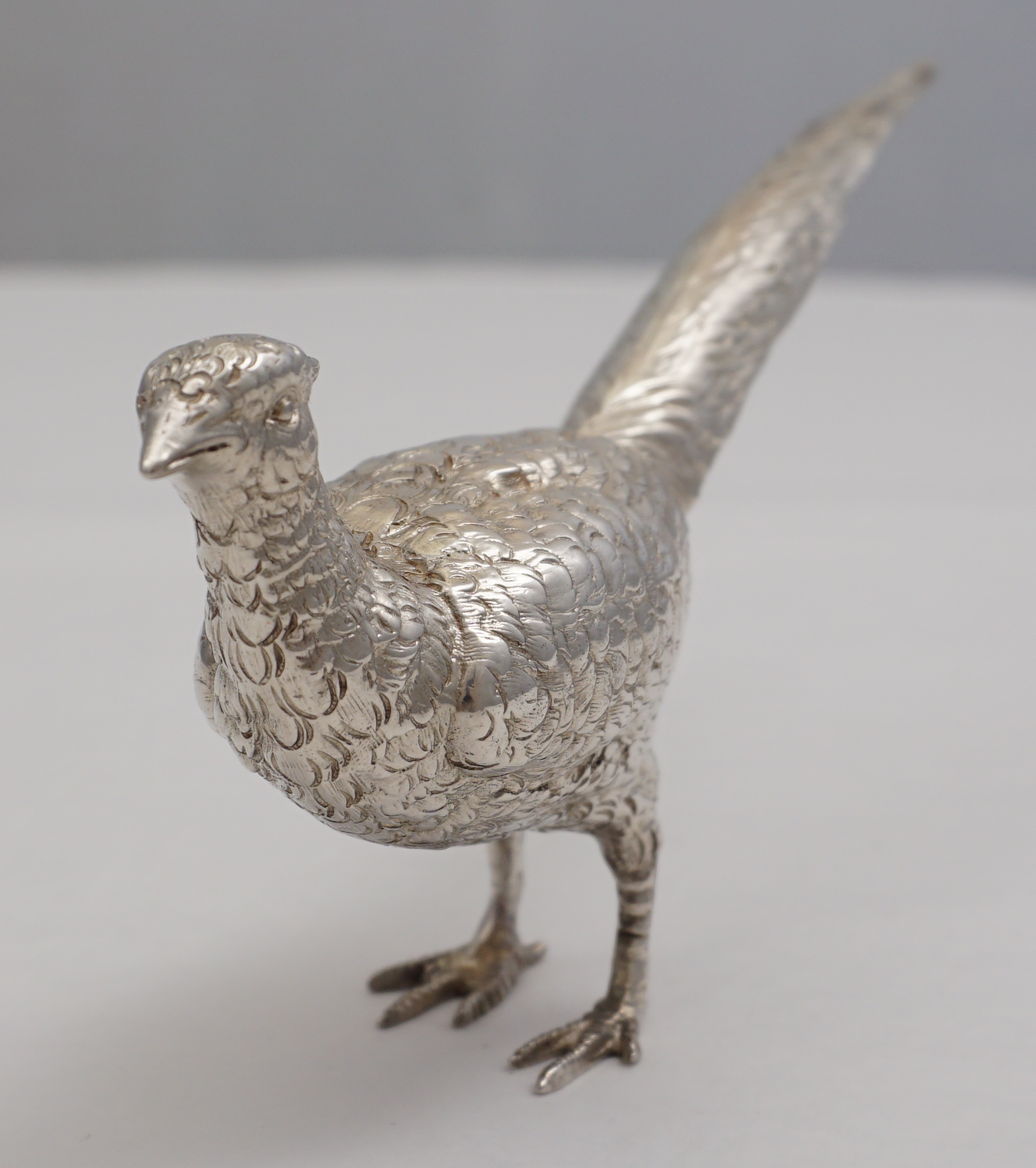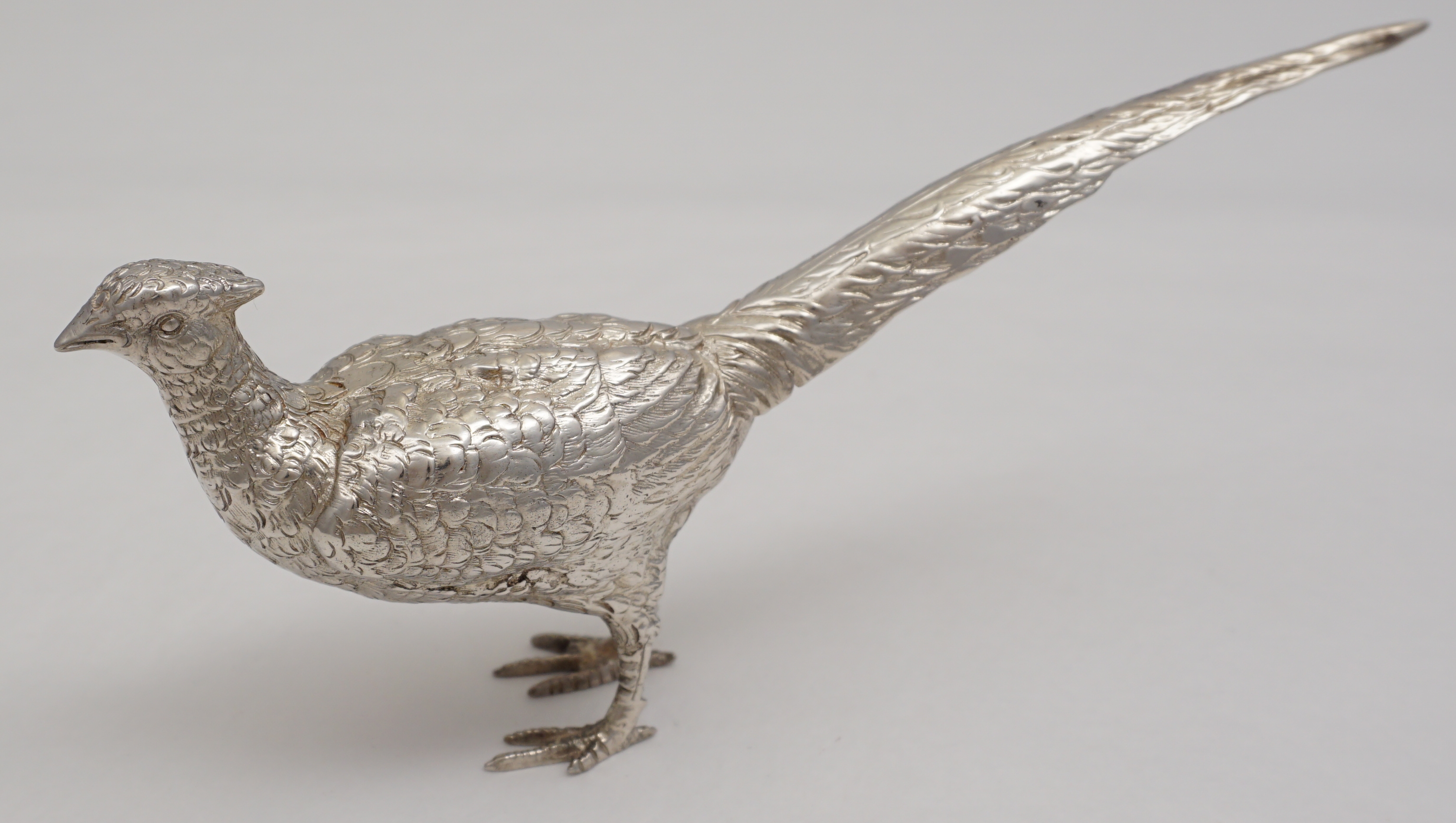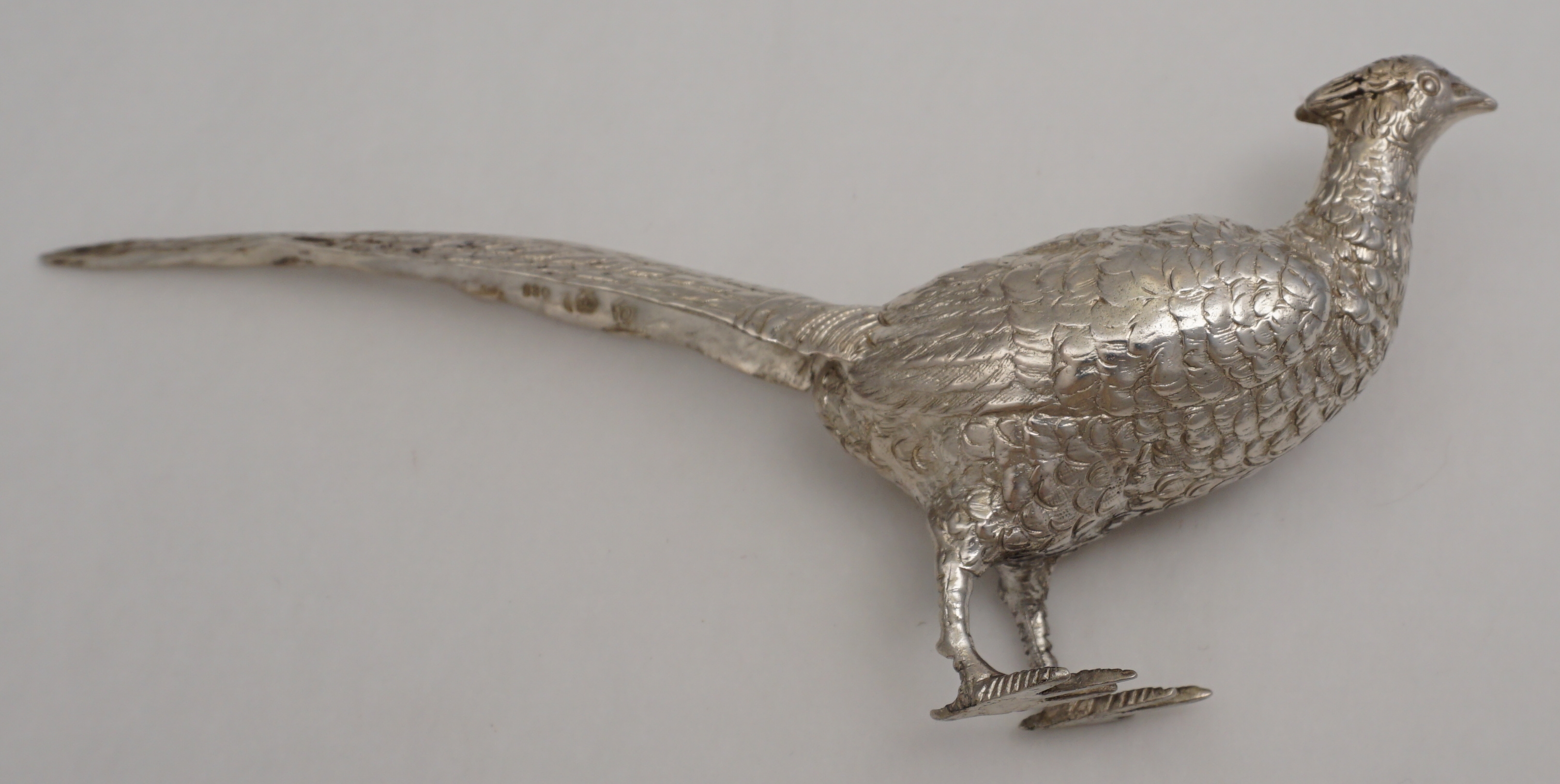 DESCRIPTION | Very good, nicely detailed hollow silver animalier of a pheasant. |