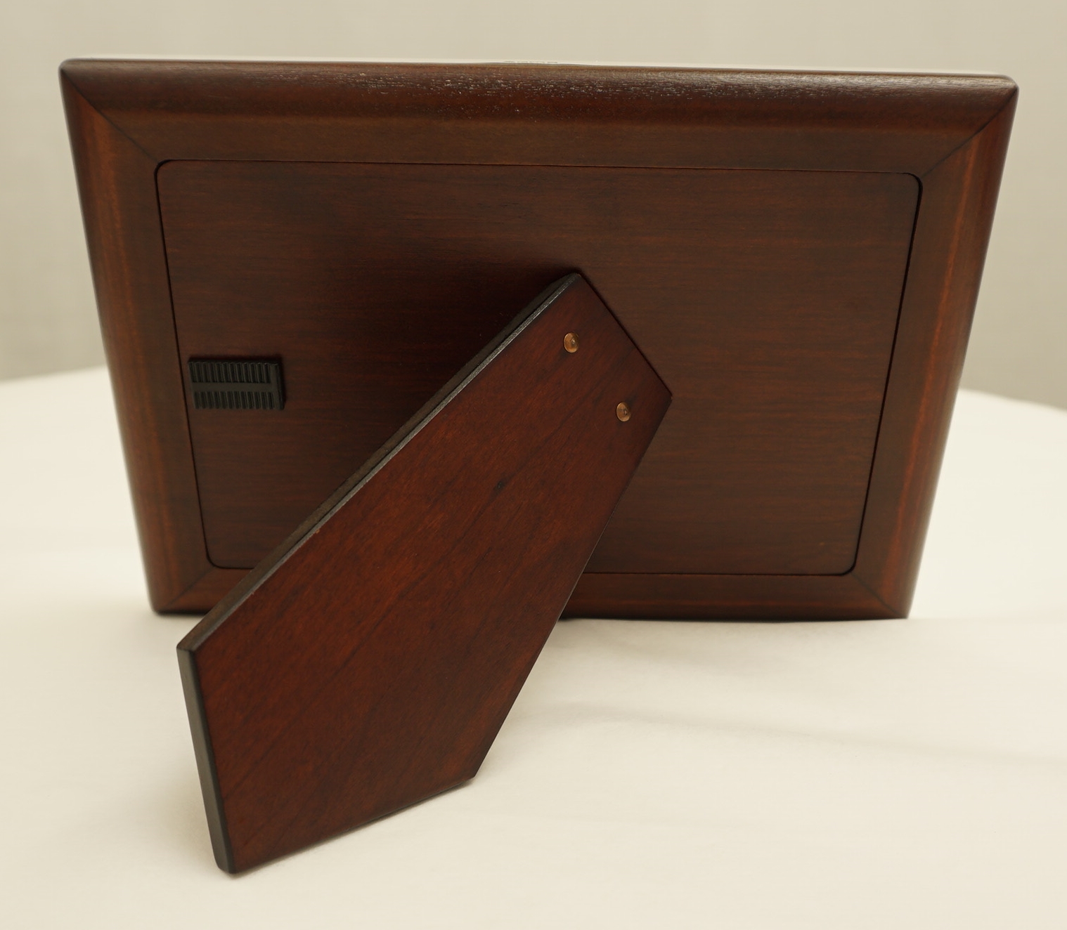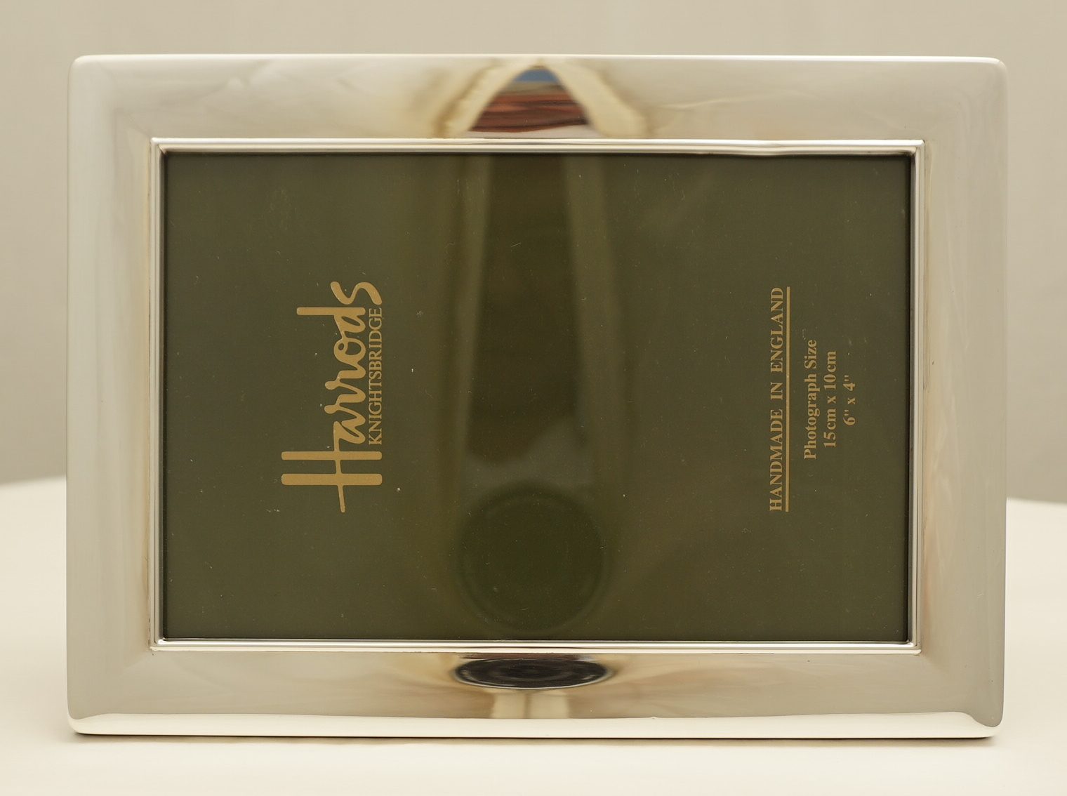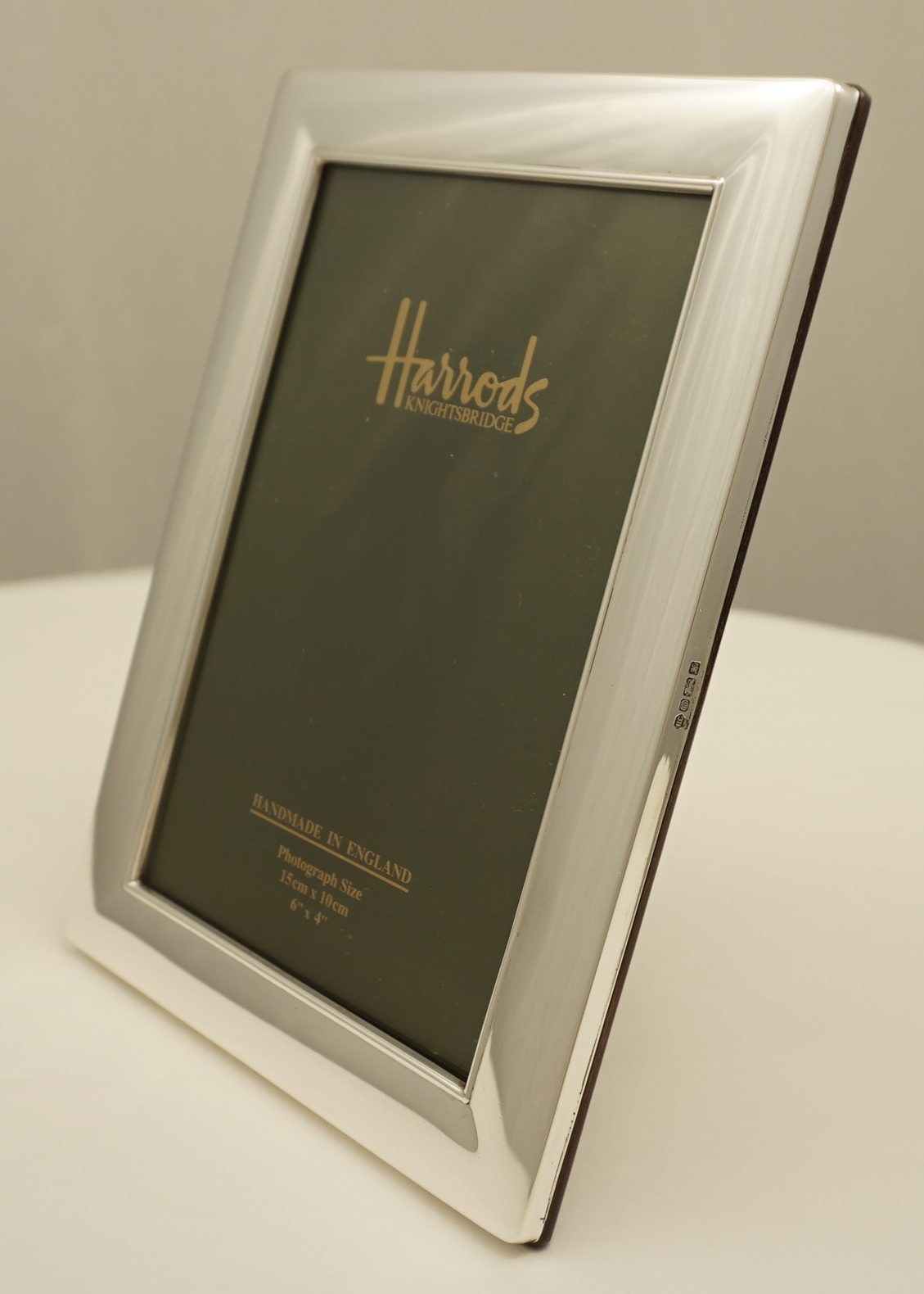 DESCRIPTION | Good vintage solid sterling silver mounted photograph frame with a wood strut back that works both landscape and portrait. |