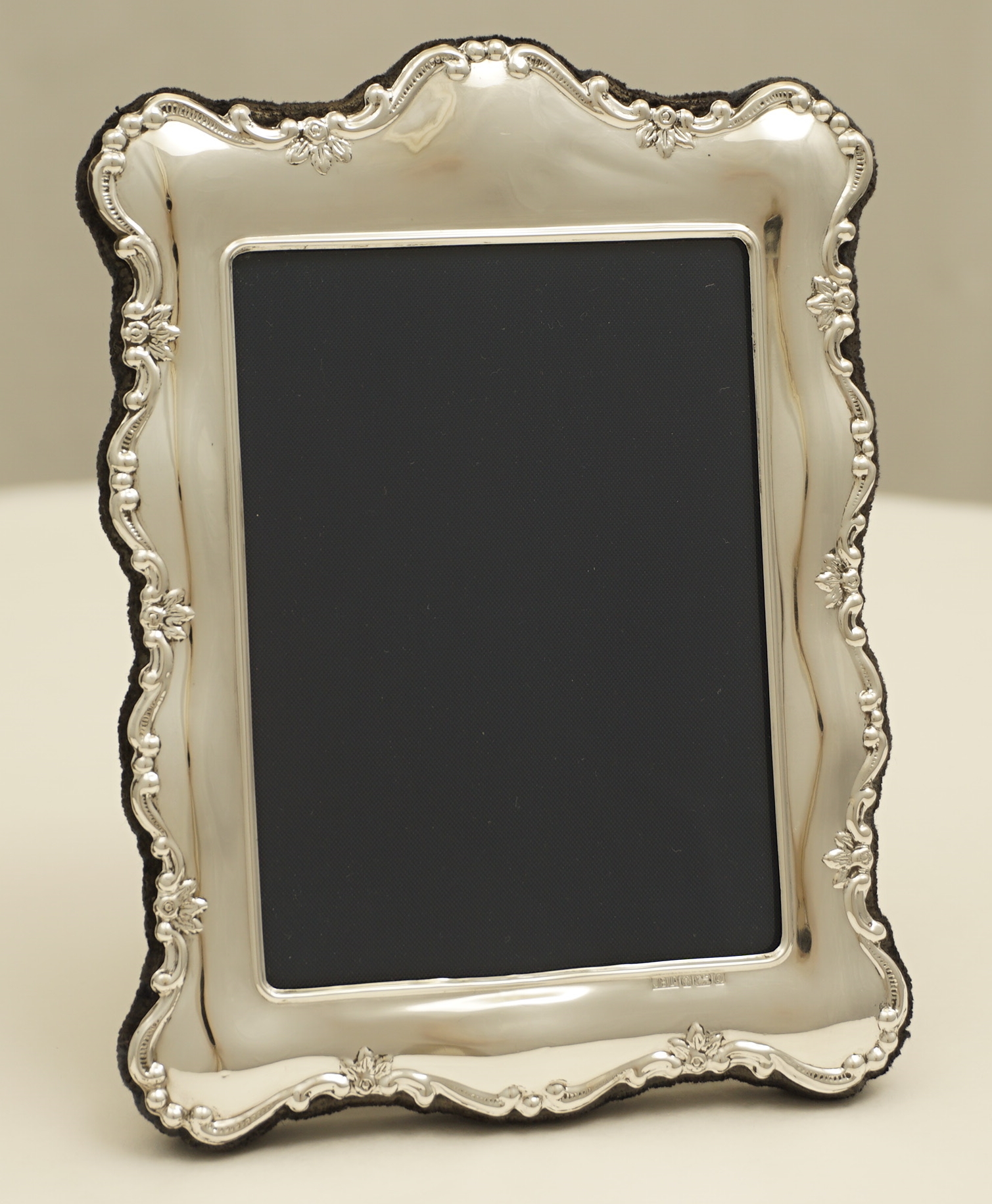 DESCRIPTION | Good and useful solid sterling silver mounted photograph frame with a felt strut back. |