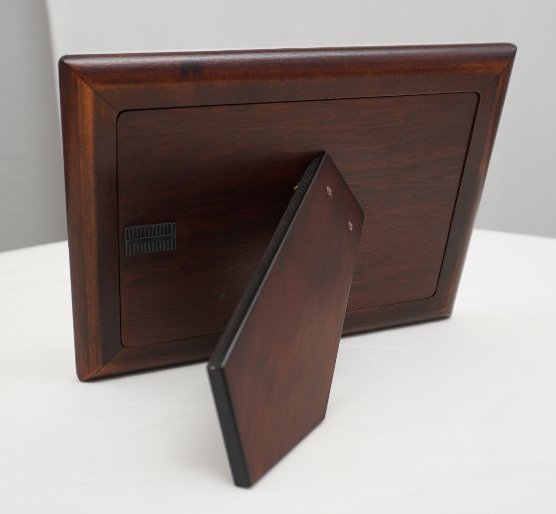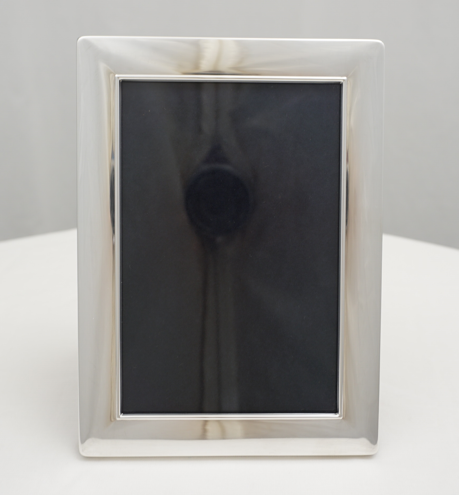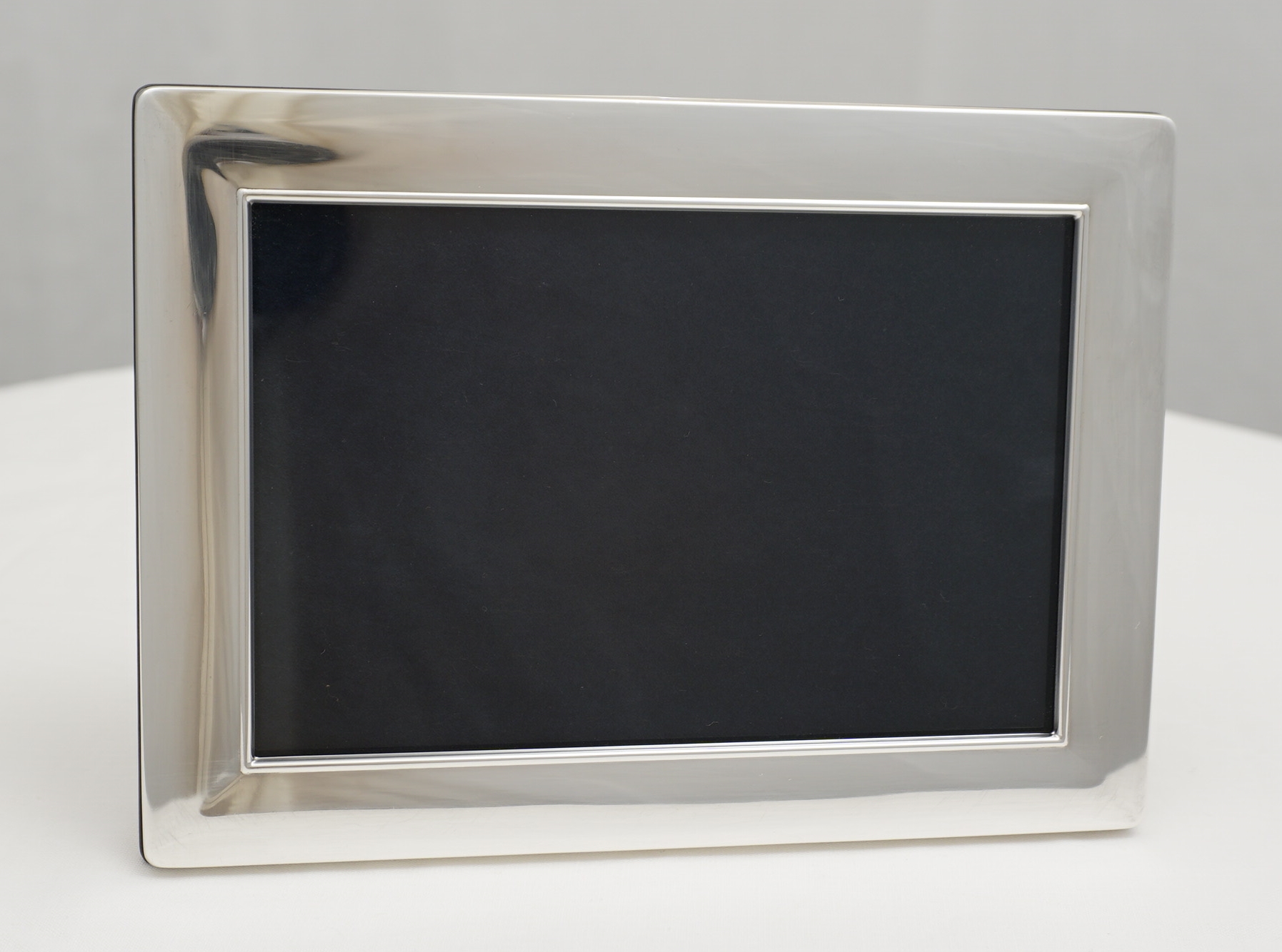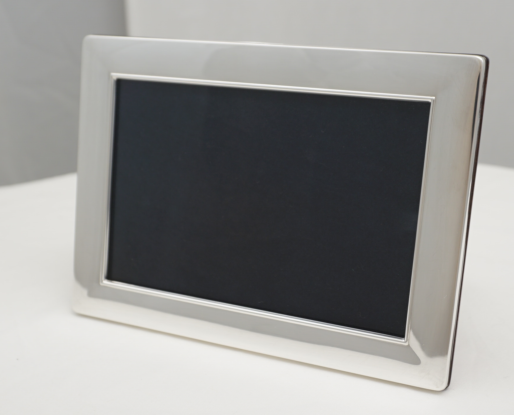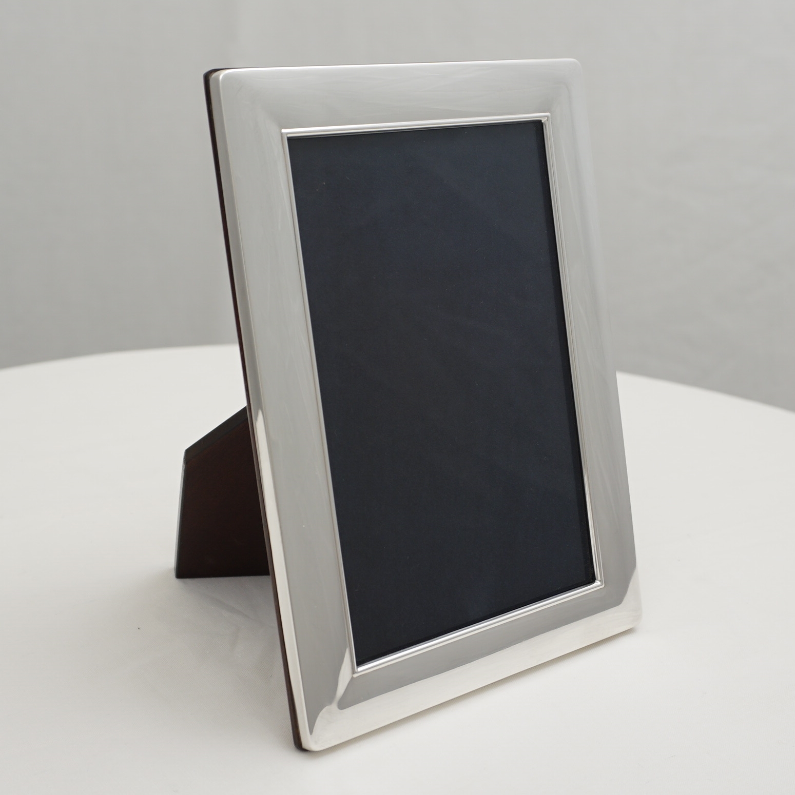 DESCRIPTION | Very good solid sterling silver mounted photograph frame with wood strut back that enables this frame to work as landscape or portrait. Carr's currently offer this frame for £183 or at least would if they had any in stock. |