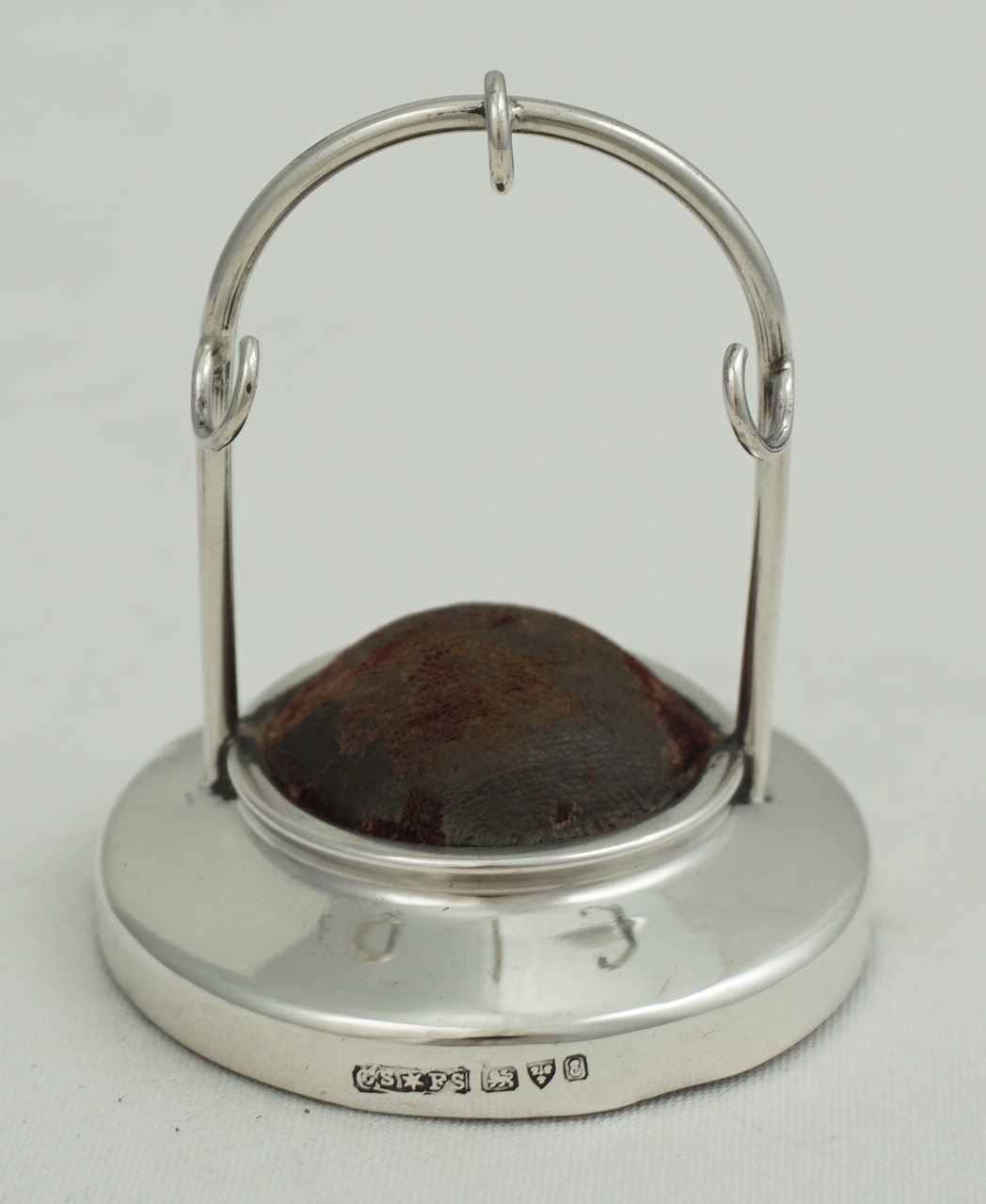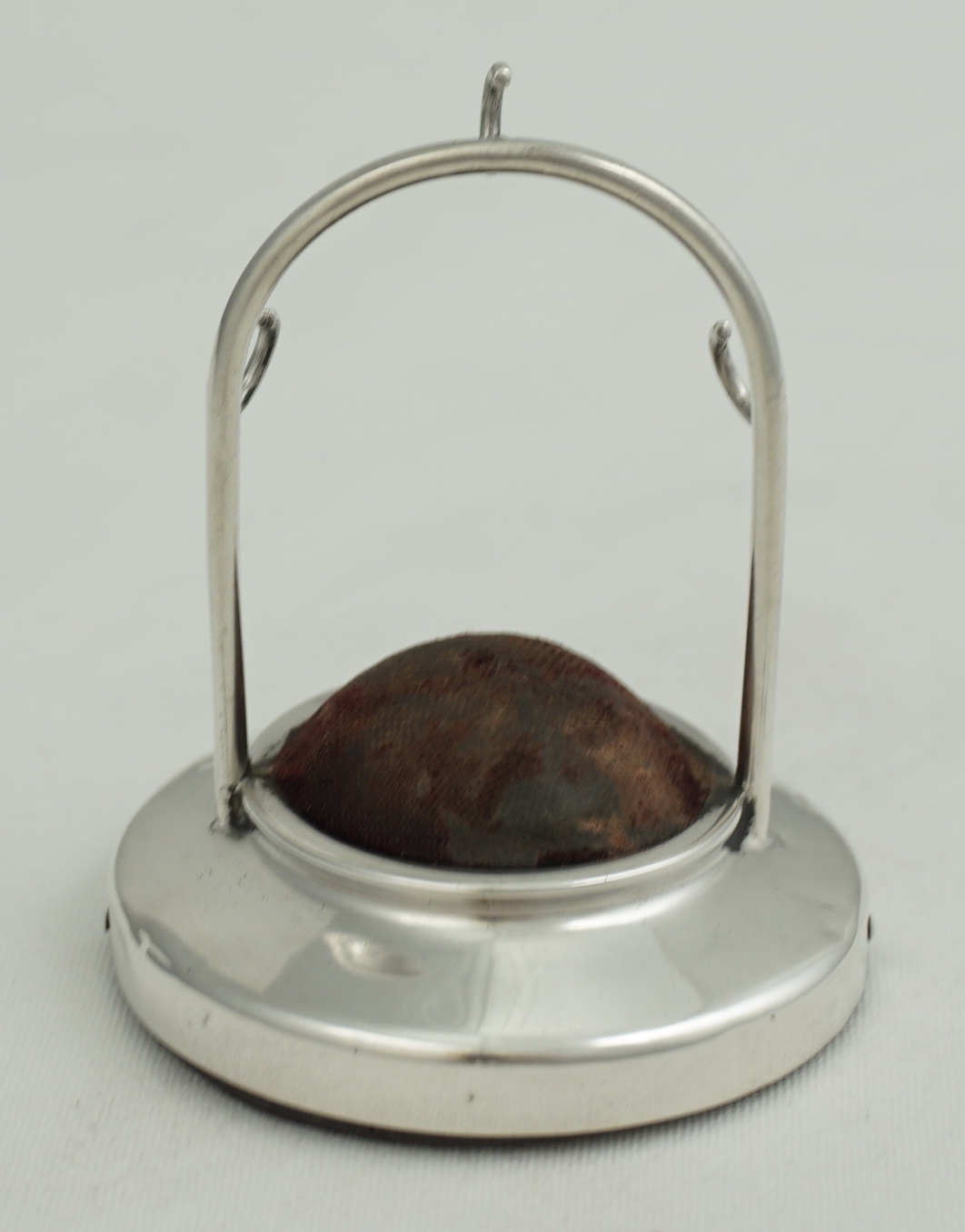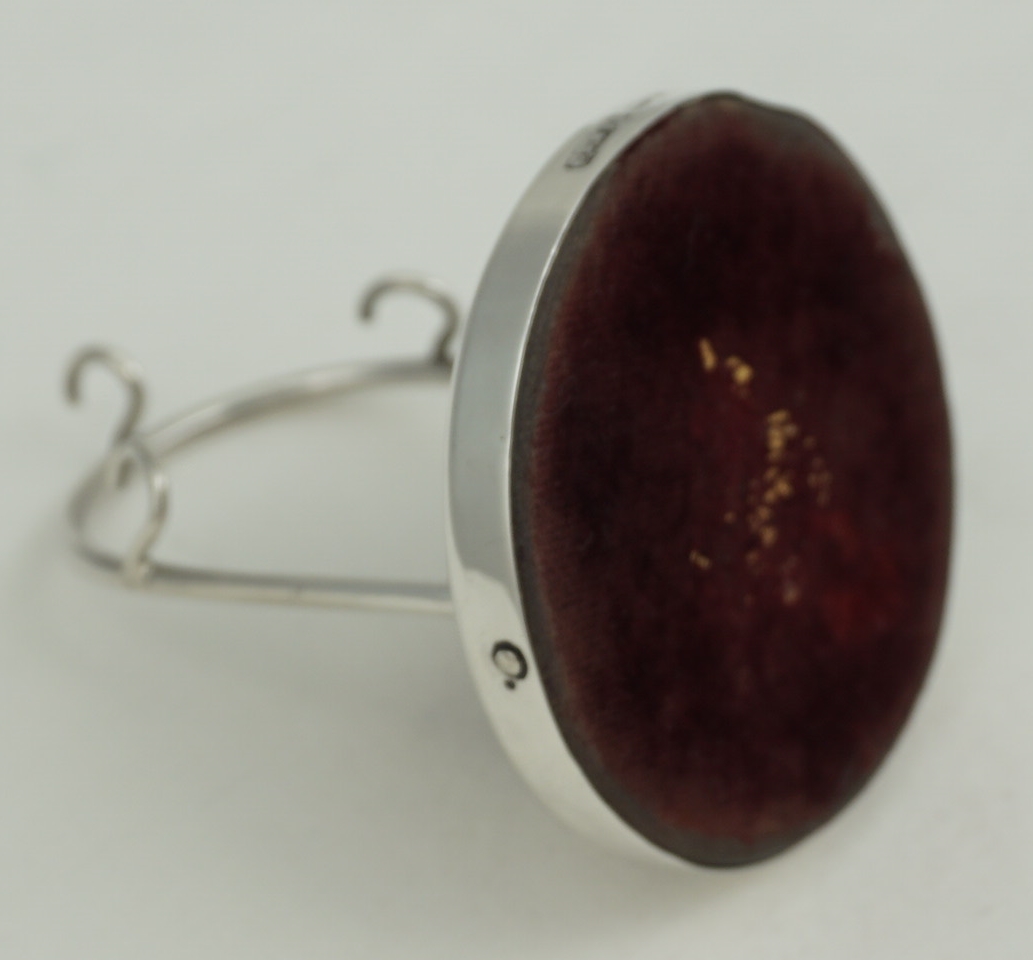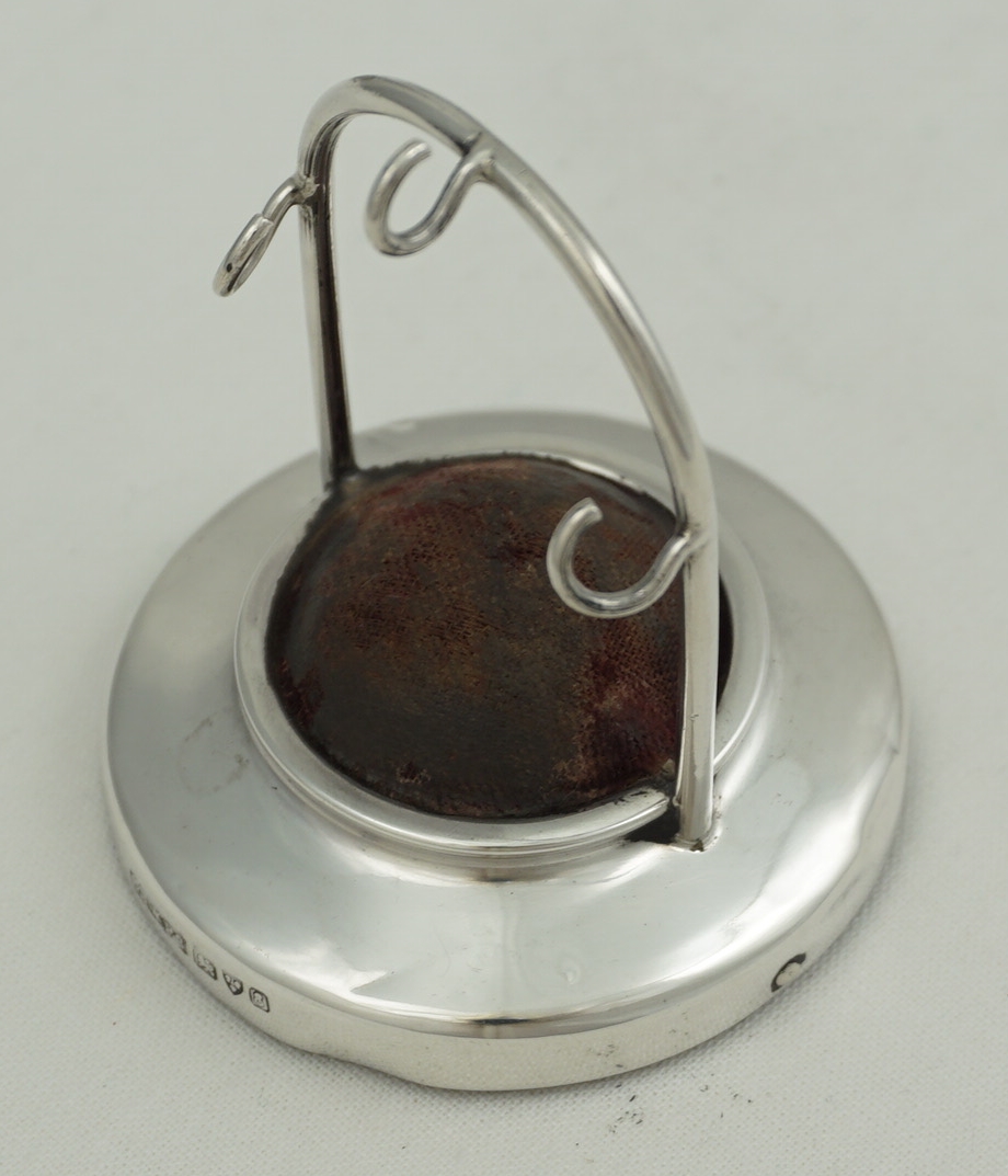 DESCRIPTION | Antique English solid sterling silver pocket watch display stand with a velvet lined and loaded silver base. |