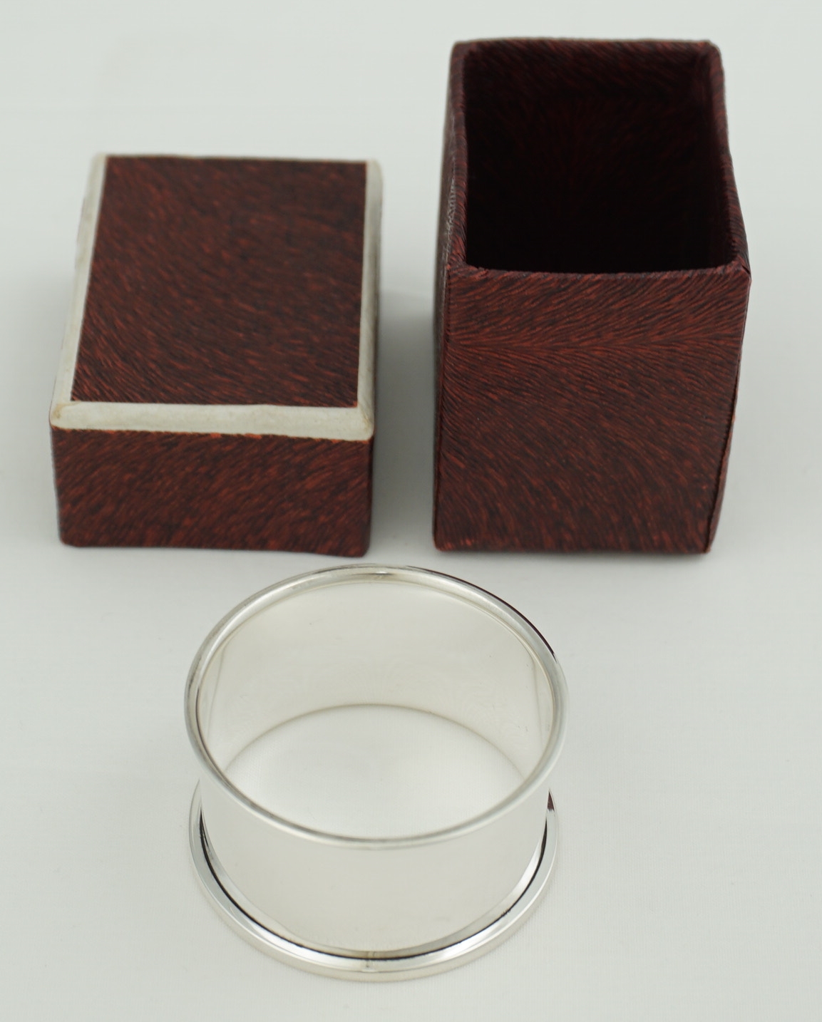 DESCRIPTION | Very good English solid sterling silver napkin, serviette ring with original box and no engraving or erasure. |