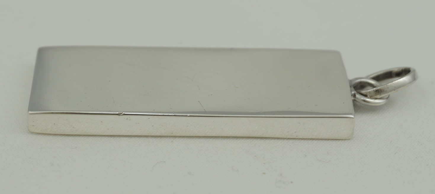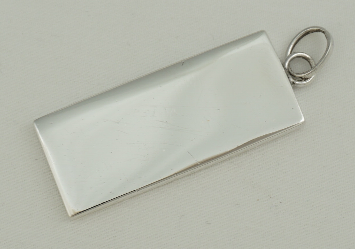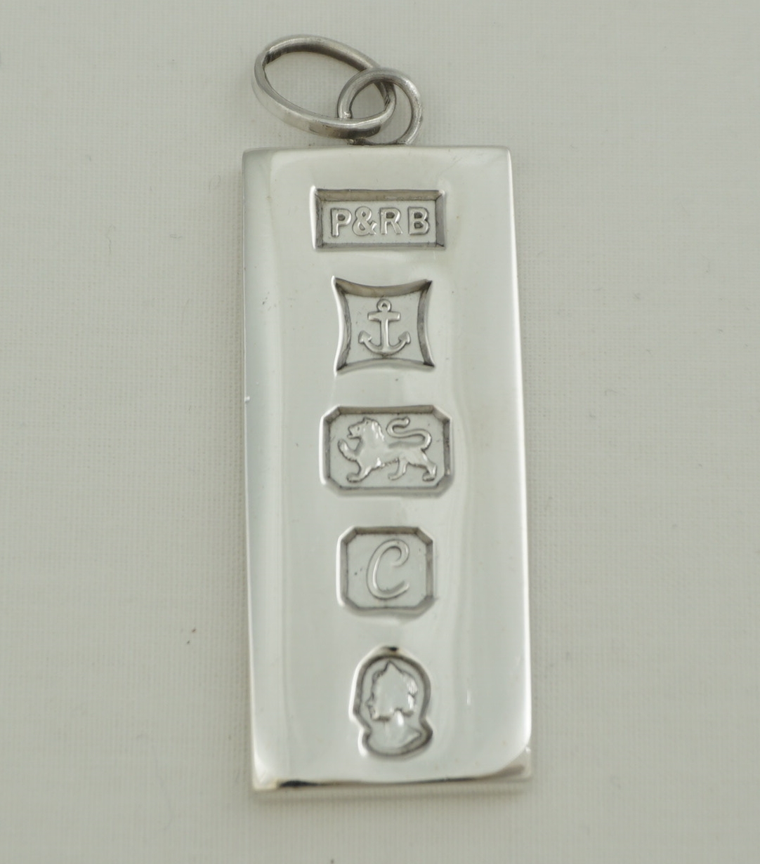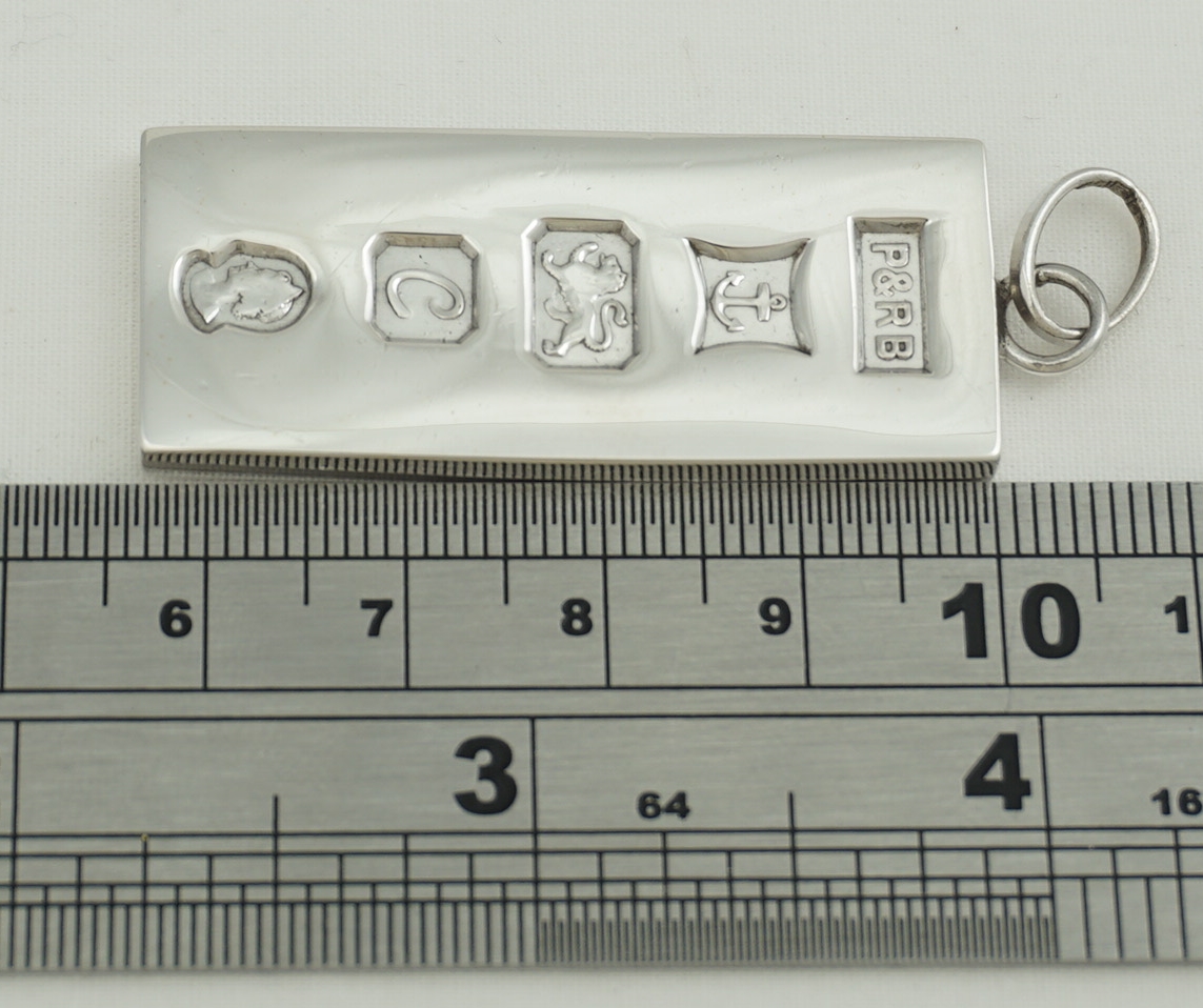 DESCRIPTION | Vintage English solid sterling silver ingot pendant with the special Silver Jubilee hallmark and suspension loops. |