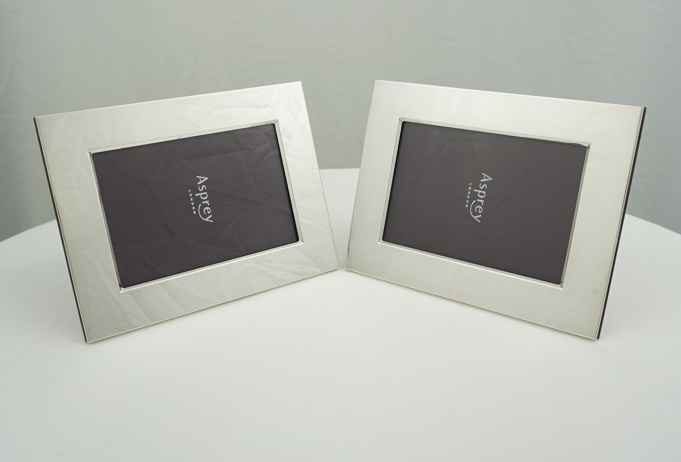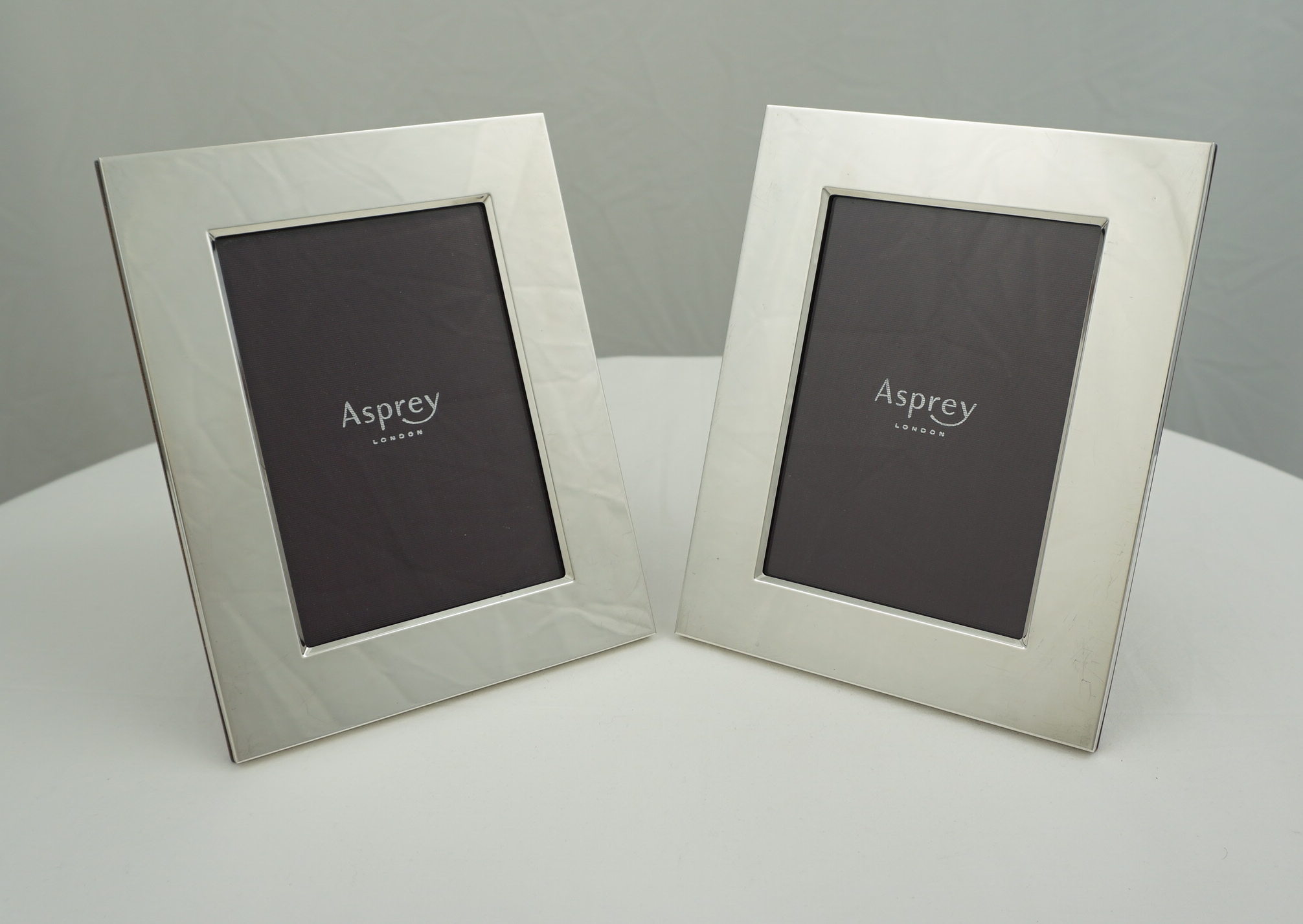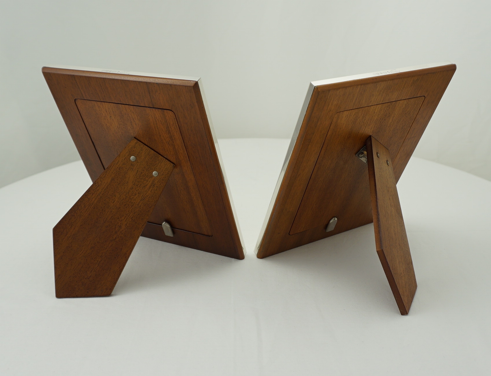 DESCRIPTION | Superb pair of high quality solid sterling silver mounted photograph frames with wood strut backs that work in landscape and portrait. |