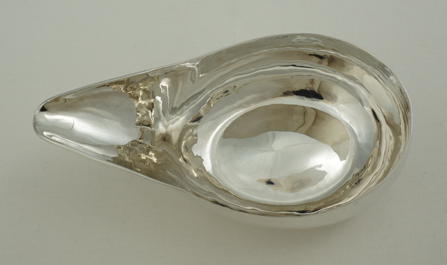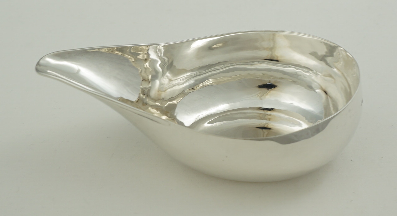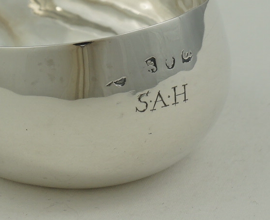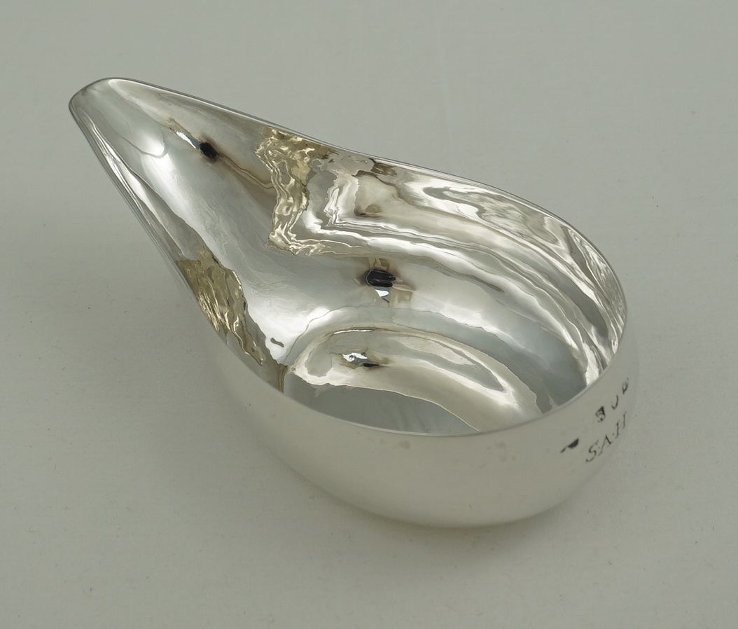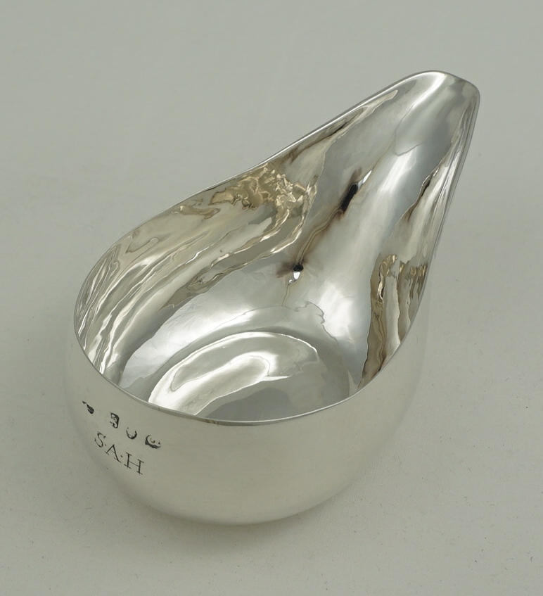 DESCRIPTION | Very good antique English Georgian solid sterling silver pap boat with the original engraving 'S·A·H' below the hallmarks. |