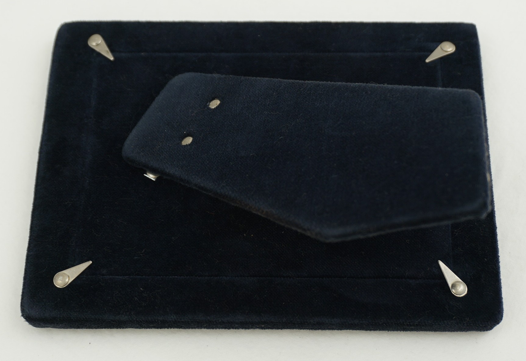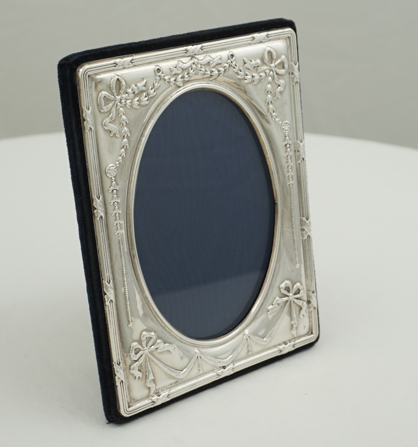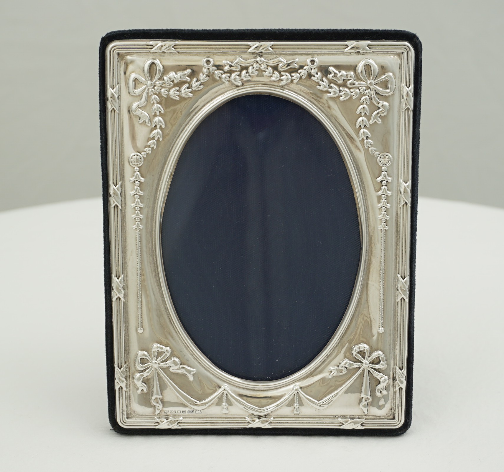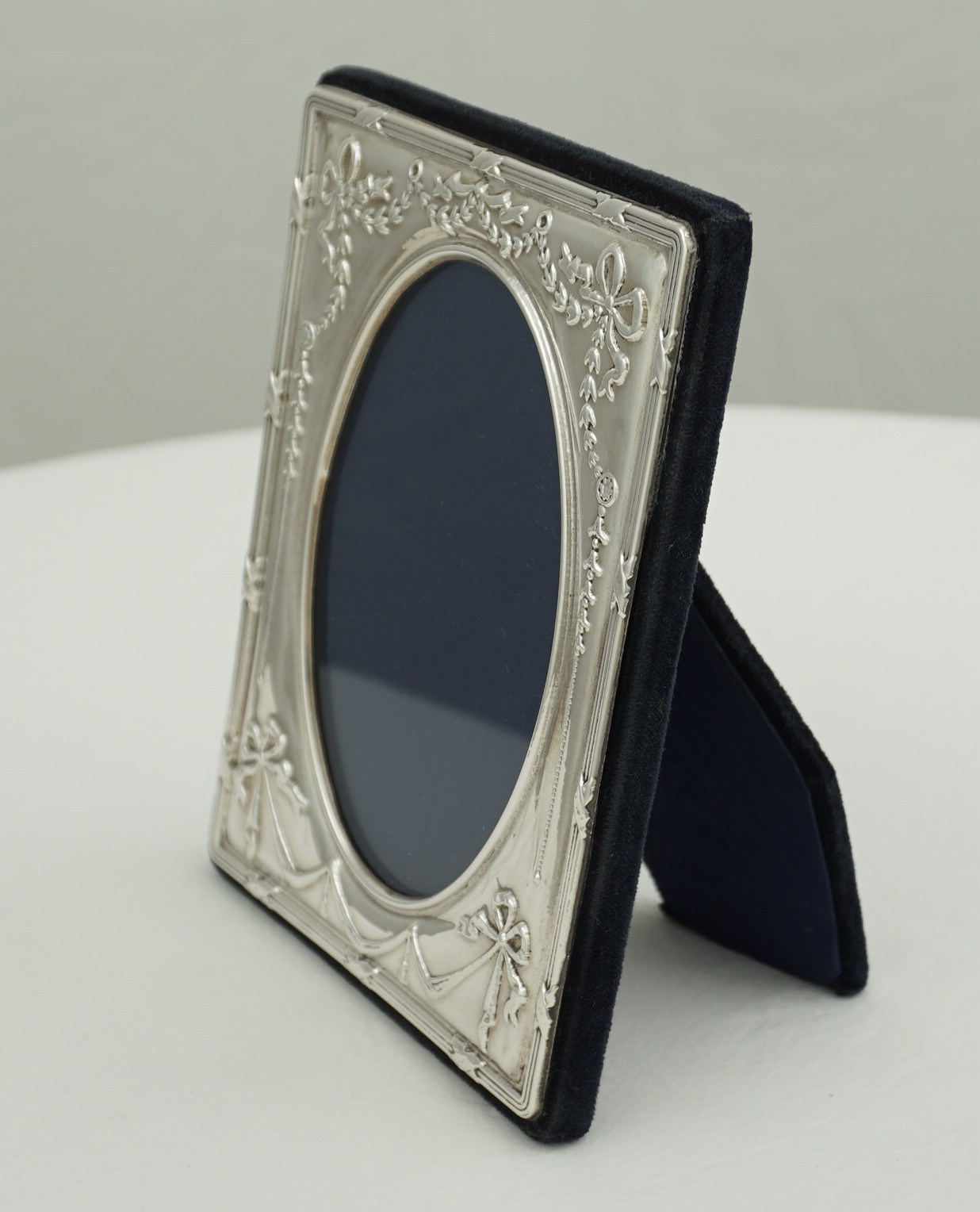 | DESCRIPTION | Solid sterling silver mounted photograph frame with an oval aperture and felt strut back that goes both ways. |