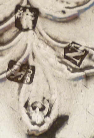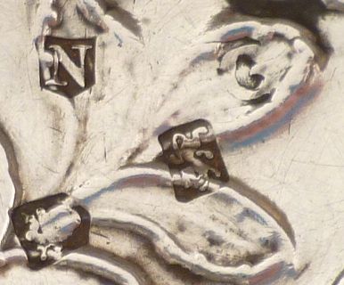 The mark appears to have been struck into a plain bowl which was then embossed before being sent to assay for the rest of the marks. Exactly the correct order of works but the embossing has interrupted the makers mark and all I