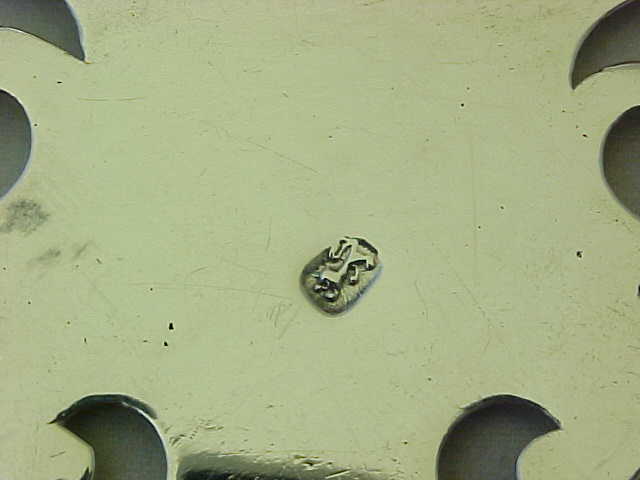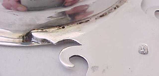 .925 sterling silver. The punch to the bowl and to the handle is of the 1720-28 series so it seems as certain as it ever can be in these matters that these are the original handles. |