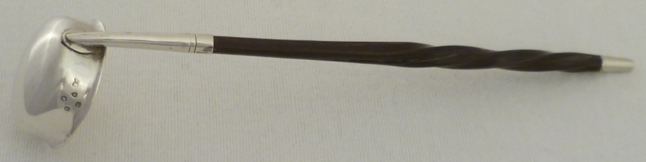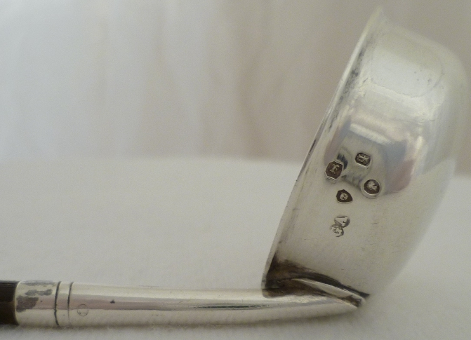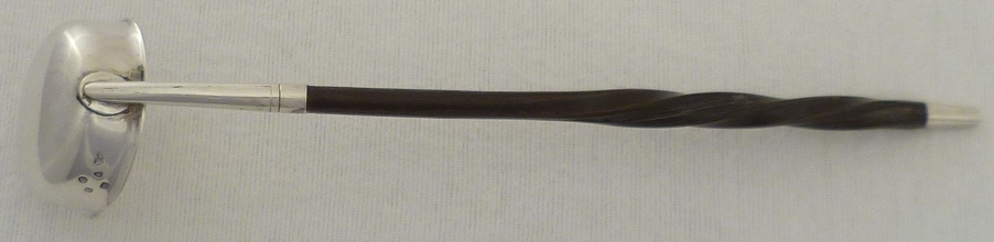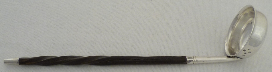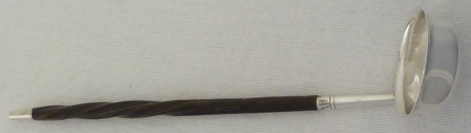 | DESCRIPTION | Victorian silver strong punch or toddy ladle with a silver capped spiral twist baleen handle and an almost flat bottomed, deep sided circular bowl. Indicative of the finest quality is the additional lion passant struck to the heel boss. |