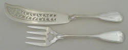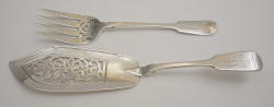 12" Victorian sterling silver fish serving slice and fork with pierced decoration and monogram engraving, the fork also with bright-cutting and an engraved fish, Exeter 1852, London 1859, 235g. | m8360 | £217 |