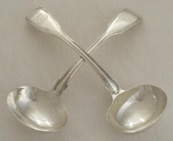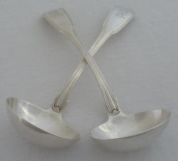 Pair 7 ¼" d/s F&T sauce ladles, William Eaton, London 1839, 172g. | m5389 | £165 | |