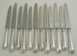 Versatile set of 6+6 table knives, loaded silver handles, Mappin & Webb, Sheffield 1976, total 883g.