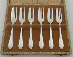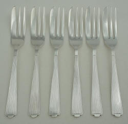 Six 4 ½" Art Deco pastry or cake forks, Sheffield 1936, 115mm, 84g. |