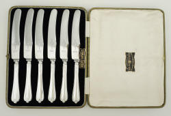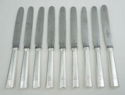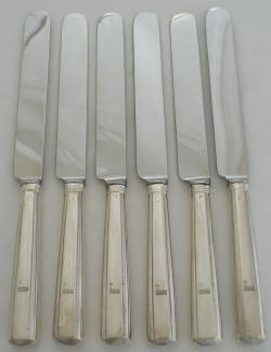 Six 7" Art Deco Silver Handled Tea Knives, Emile Viner, Sheffield 1931. |