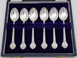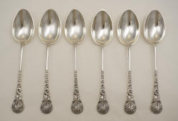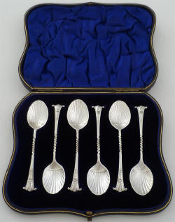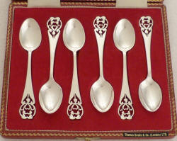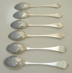 Six 4 ¼" Onslow variant, Wakely & Wheeler, London 1893, silver 76g. |